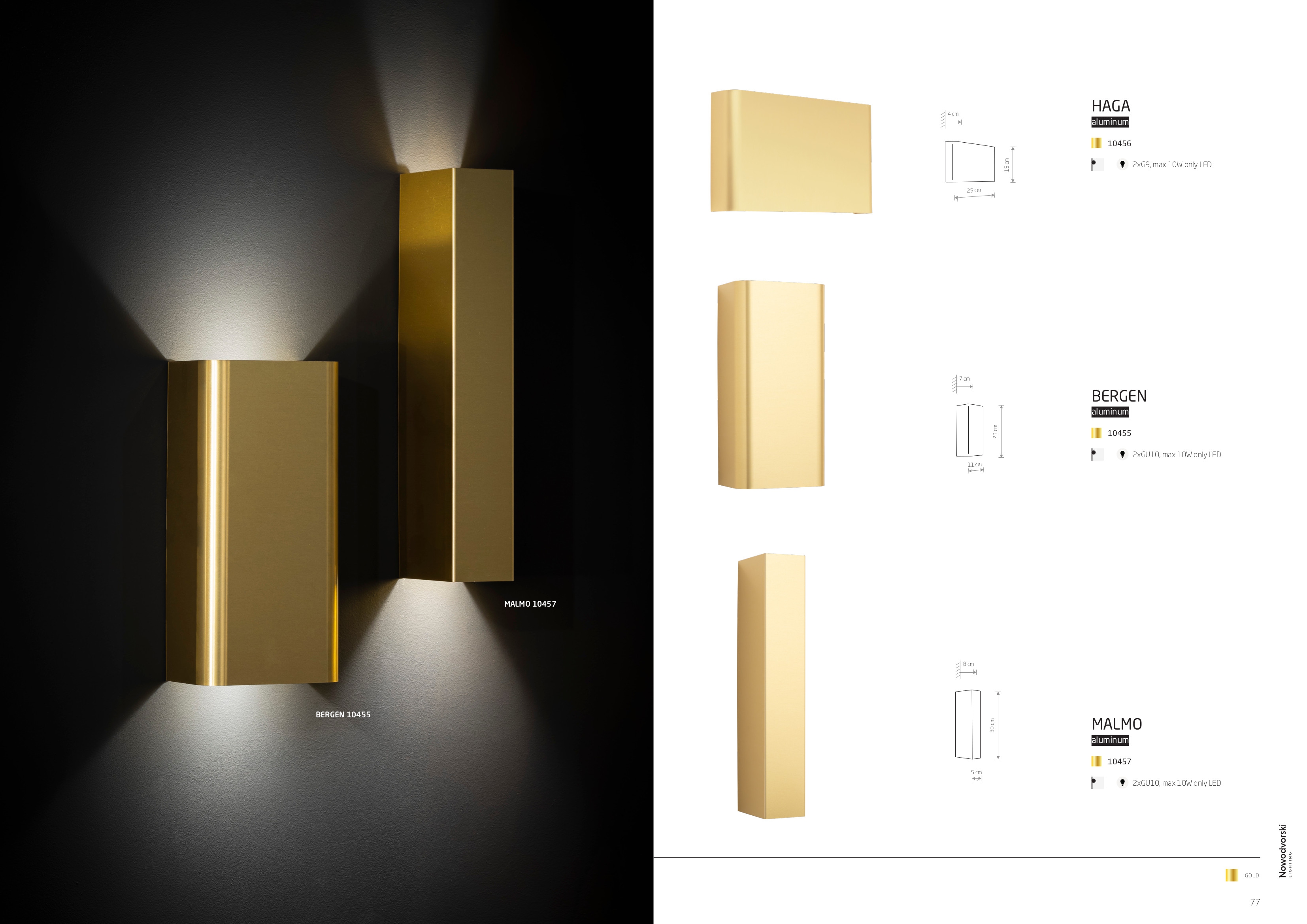 Осветителното тяло 10456 HAGA GOLD представлява аплик в съвременен стил. 10456 HAGA GOLD е от категорията осветителни тела и е подходящо за осветяване на различни помещения и пространства като: всекидневна / хол, спалня, кухня, трапезария, коридор, антре, стълбище, офис.