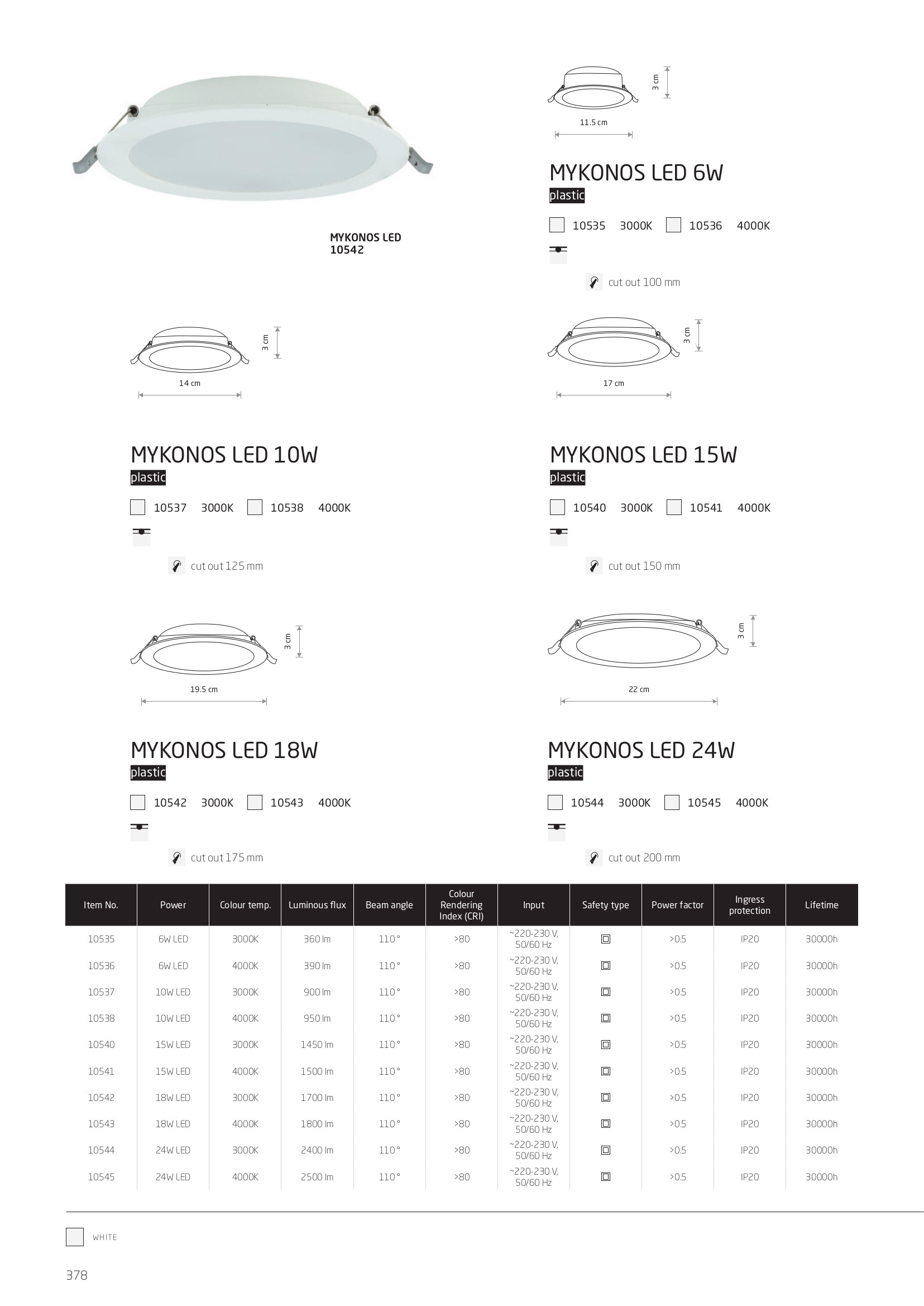 Осветителното тяло 10542 MYKONOS LED 18W, 3000K, WH представлява лед луничка / луна в съвременен стил. 10542 MYKONOS LED 18W, 3000K, WH е от категорията и е подходящо за осветяване на различни помещения и пространства като: всекидневна / хол, спалня, кухня, трапезария, коридор, антре, стълбище, офис.