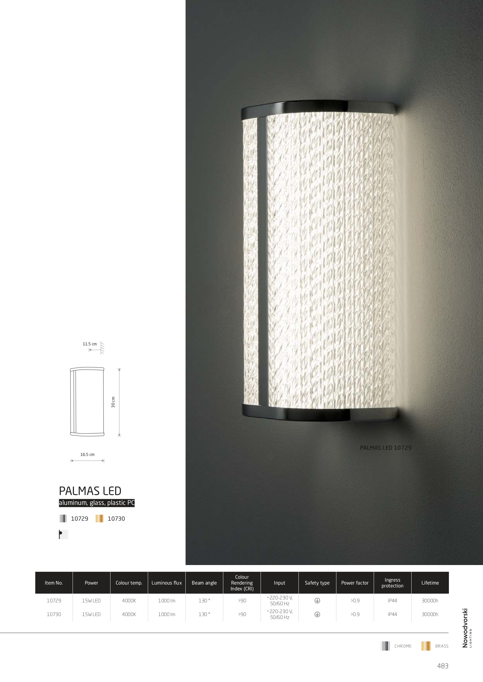 Лед аплик 10729 PALMAS LED CHROME ще осигури комфорт и естетика във всяко помещение, в което се постави. Цялостната визия и дизайн на led лампата и вложените в изработката й материали, като алуминий в цвят хром, релефно прозрачно стъкло, полимер, ще допринесат за един неповторим стил. Благодарение на дългогодишния опит в производството на лед осветление, качествените материали и строгия контрол на качеството на изработка на производителя Nowodvorski (Полша), 10729 PALMAS LED CHROME е на високо европейско ниво.