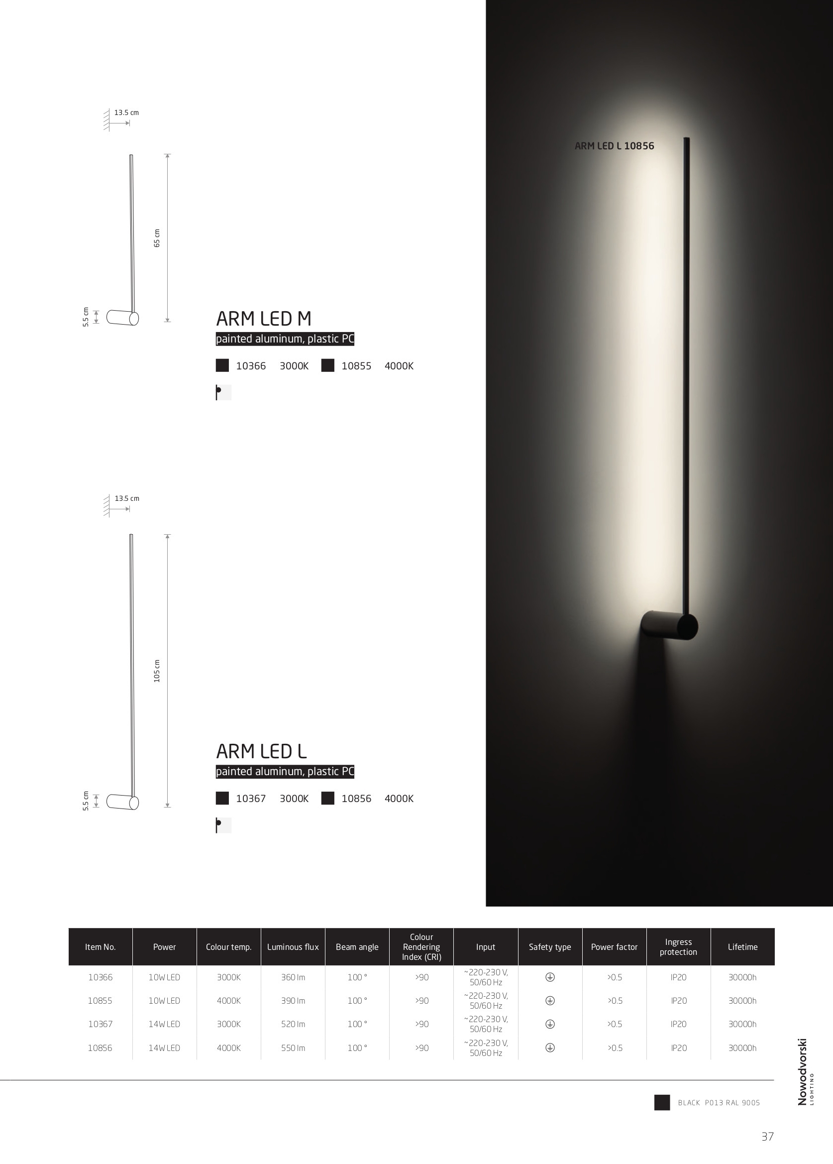Лед аплик 10856 ARM LED L 4000K ще осигури комфорт и естетика във всяко помещение, в което се постави. Цялостната визия и дизайн на led лампата и вложените в изработката й материали, като алуминий в черен цвят, полимер в бяло, ще допринесат за един неповторим стил. Благодарение на дългогодишния опит в производството на лед осветление, качествените материали и строгия контрол на качеството на изработка на производителя Nowodvorski (Полша), 10856 ARM LED L 4000K е на високо европейско ниво.