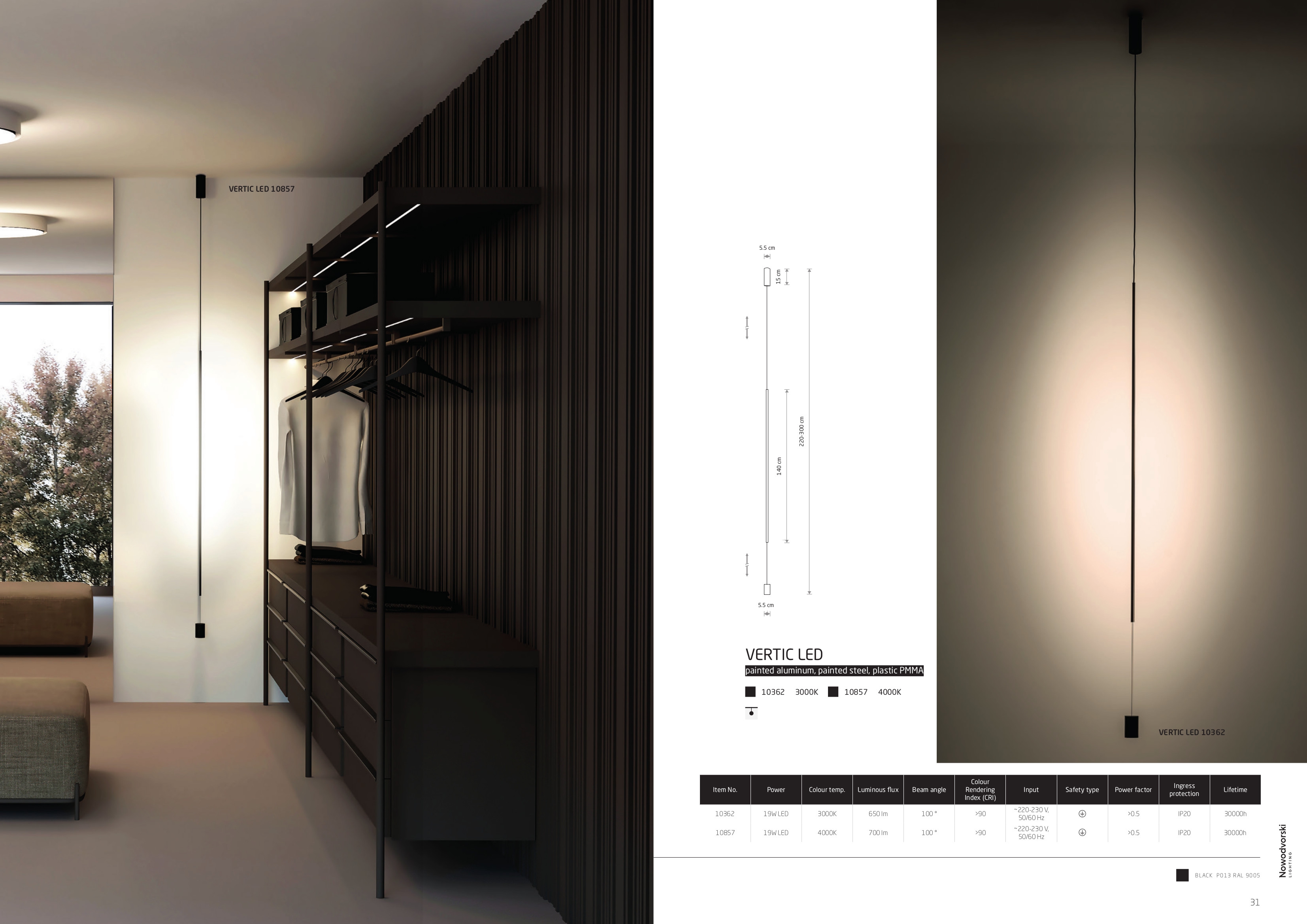 Осветителното тяло 10857 VERTIC LED 4000K ще осигури комфорт и естетика във всяко помещение, в което се постави. Цялостната визия и дизайн на лампата и вложените в изработката й материали, като алуминий в черен цвят, полимер в черно, ще допринесат за един неповторим стил. Благодарение на дългогодишния опит, качествените материали и строгия контрол на качеството на изработка на производителя Nowodvorski (Полша), 10857 VERTIC LED 4000K е на високо европейско ниво.