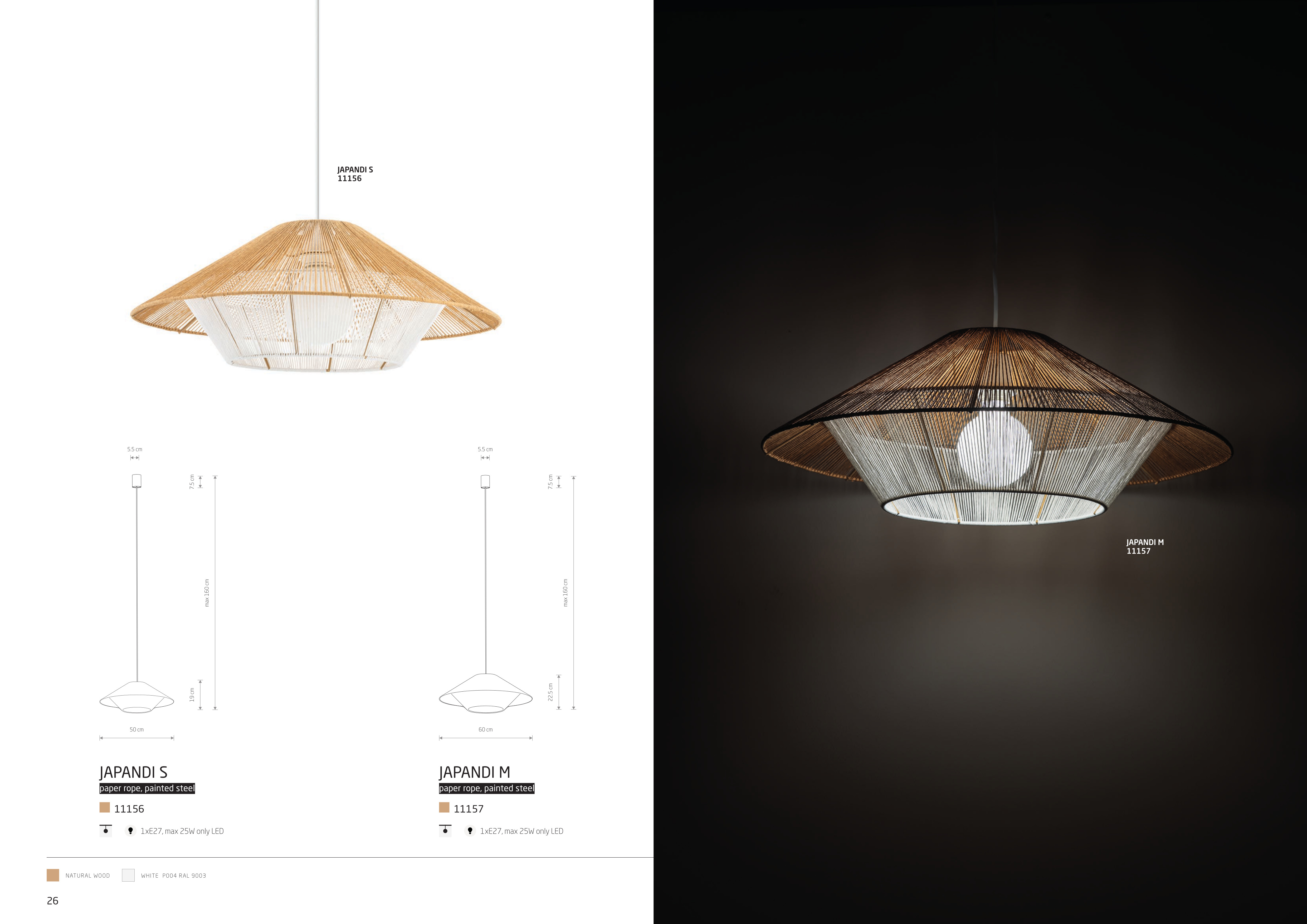Осветителното тяло 11156 JAPANDI S ще осигури комфорт и естетика във всяко помещение, в което се постави. Цялостната визия и дизайн на лампата и вложените в изработката й материали, като хартиено въже, стомана в бял цвят, ще допринесат за един неповторим стил. Благодарение на дългогодишния опит, качествените материали и строгия контрол на качеството на изработка на производителя Nowodvorski (Полша), 11156 JAPANDI S е на високо европейско ниво.