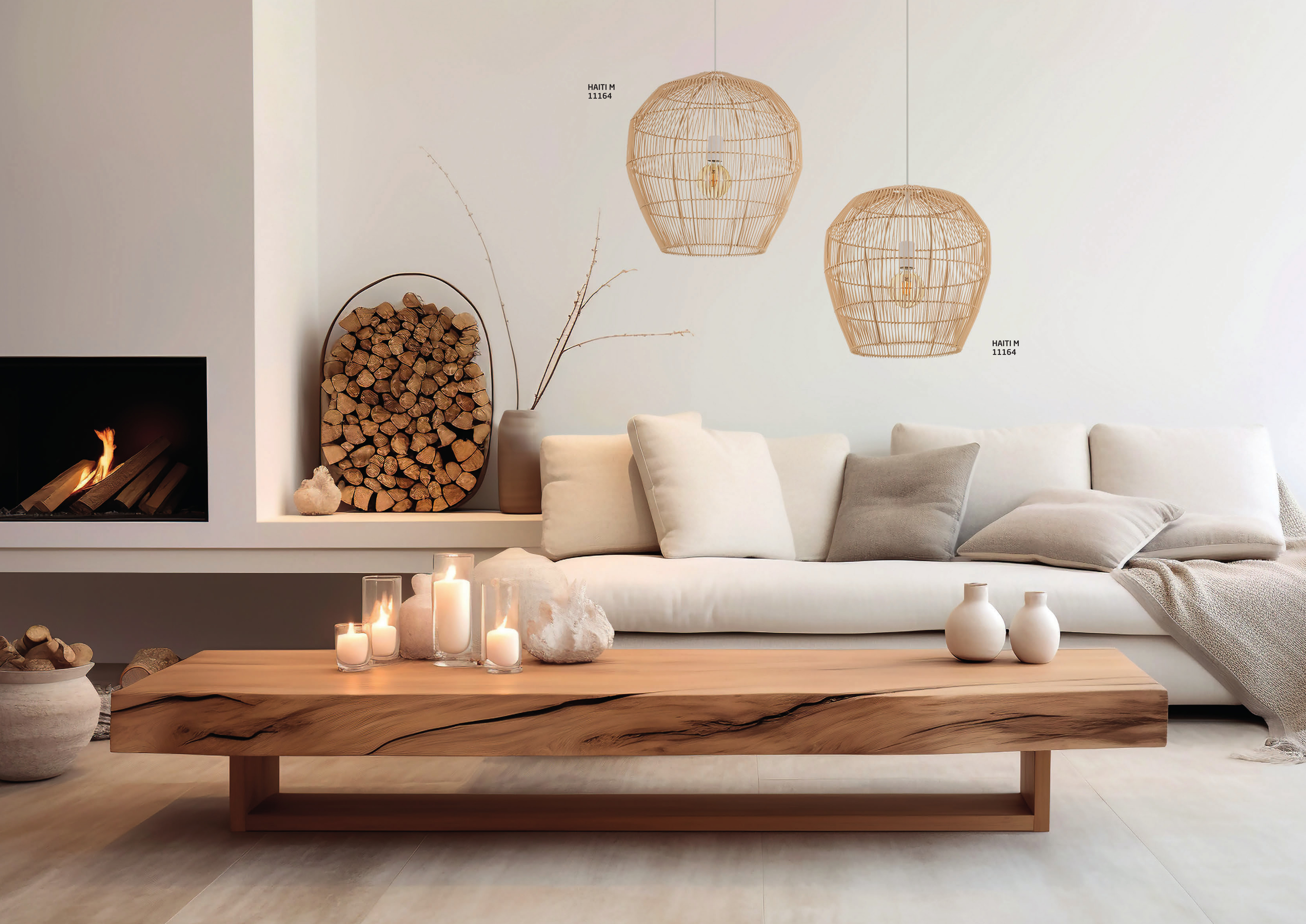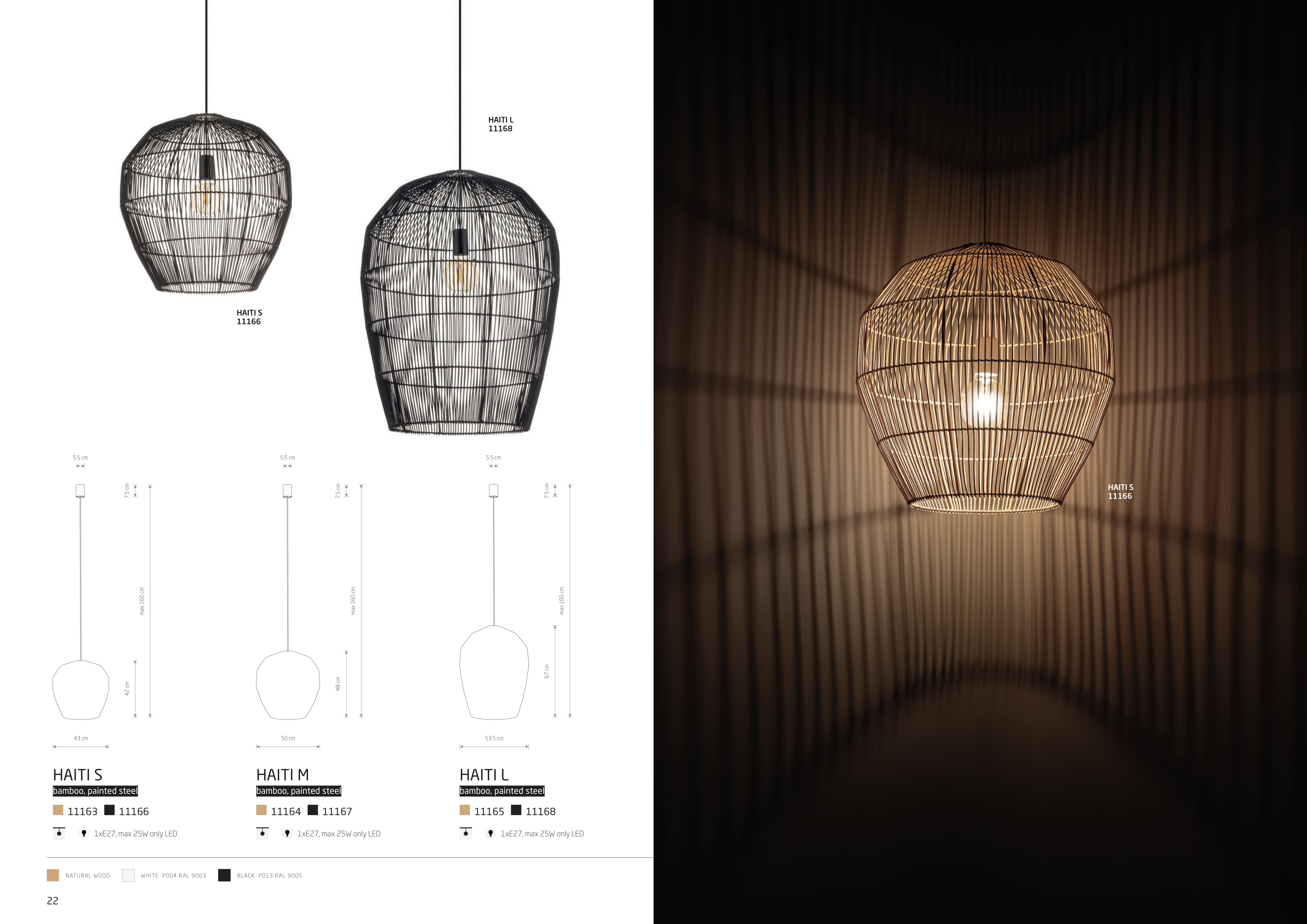 Стилът и естетиката на обстановката ще се обогатят благодарение, както на цялостната визия и дизайн на осветителното тяло, така и на вложените в изработката му, качествени материали, като: бамбук в натурален цвят, стомана в бяло.