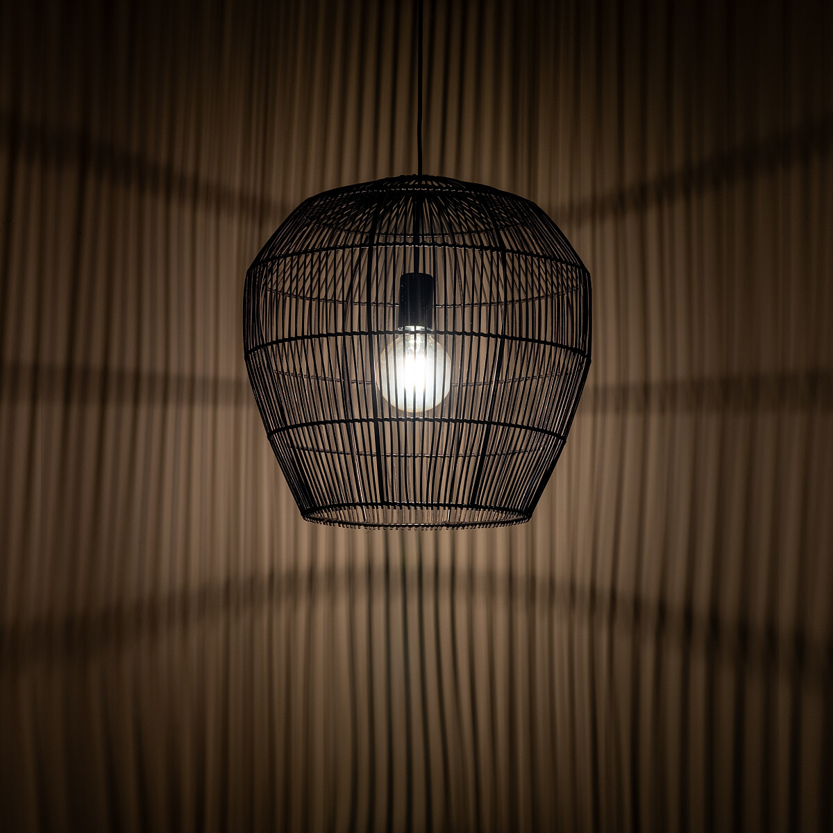 Стилът и естетиката на обстановката ще се обогатят благодарение, както на цялостната визия и дизайн на осветителното тяло, така и на вложените в изработката му, качествени материали, като: бамбук в черен цвят, стомана в черно.