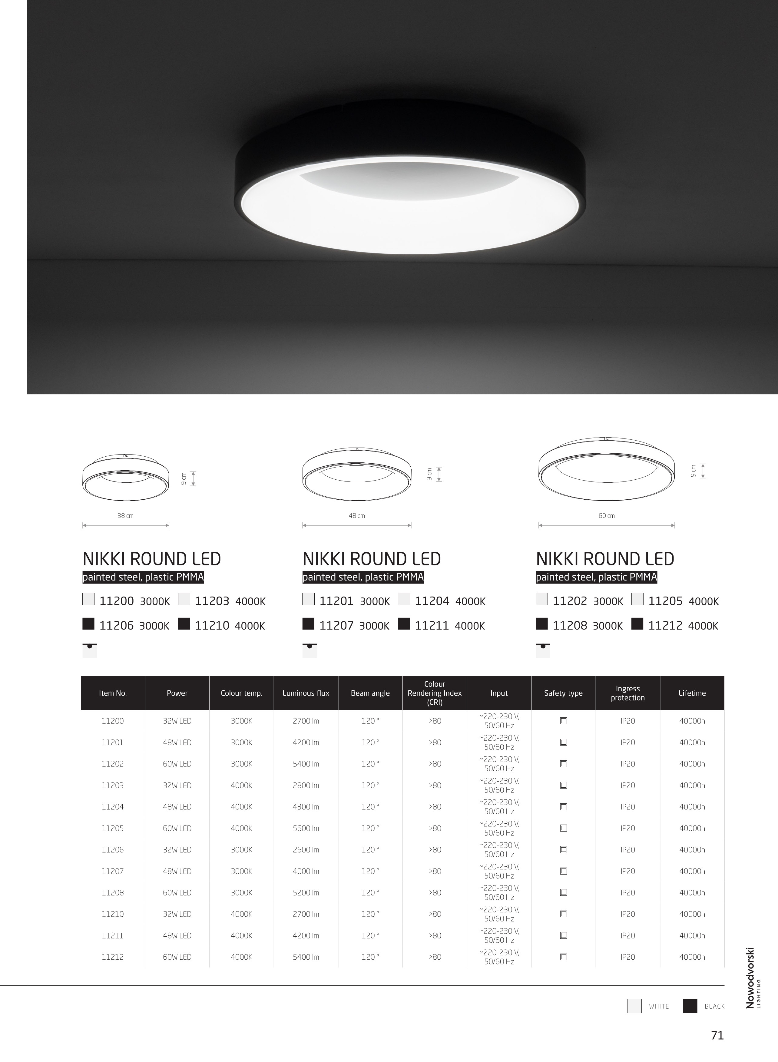 Лед плафон 11207 NIKKI ROUND LED BLACK 48W 3000K ще осигури комфорт и естетика във всяко помещение, в което се постави. Цялостната визия и дизайн на led лампата и вложените в изработката й материали, като стомана в черен цвят, полимер (РММА) в бяло, ще допринесат за един неповторим стил. Благодарение на дългогодишния опит в производството на лед осветление, качествените материали и строгия контрол на качеството на изработка на производителя Nowodvorski (Полша), 11207 NIKKI ROUND LED BLACK 48W 3000K е на високо европейско ниво.