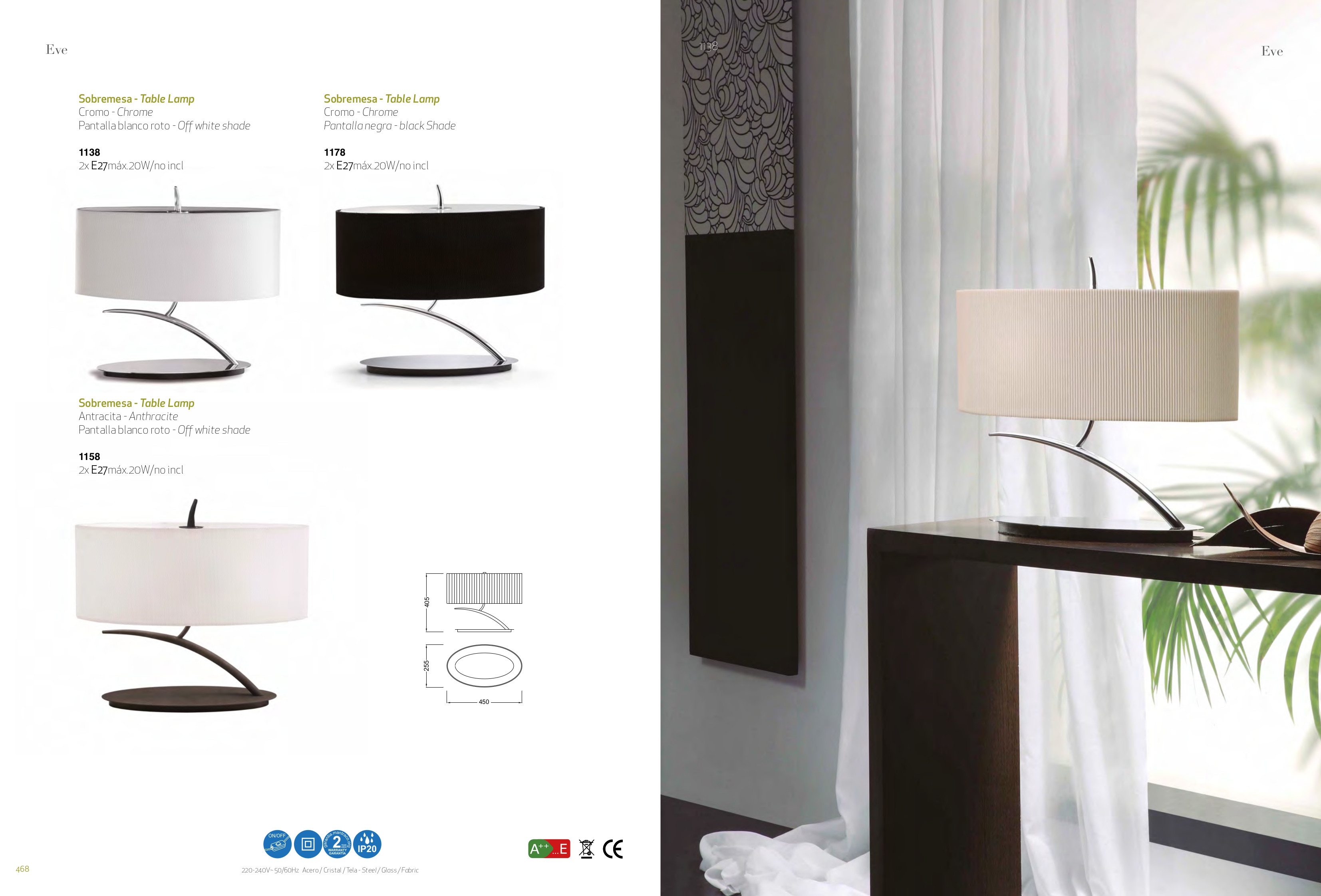 Стилът и естетиката на интериора ще се обогатят благодарение, както на цялостната визия, стил и дизайн на осветителното тяло, така и на вложените от производителя в изработката на 1138 chrome / cream shade 2xE27 20W (not incl.), качествени материали, като: метал с хромово покритие, декоративни шапки.