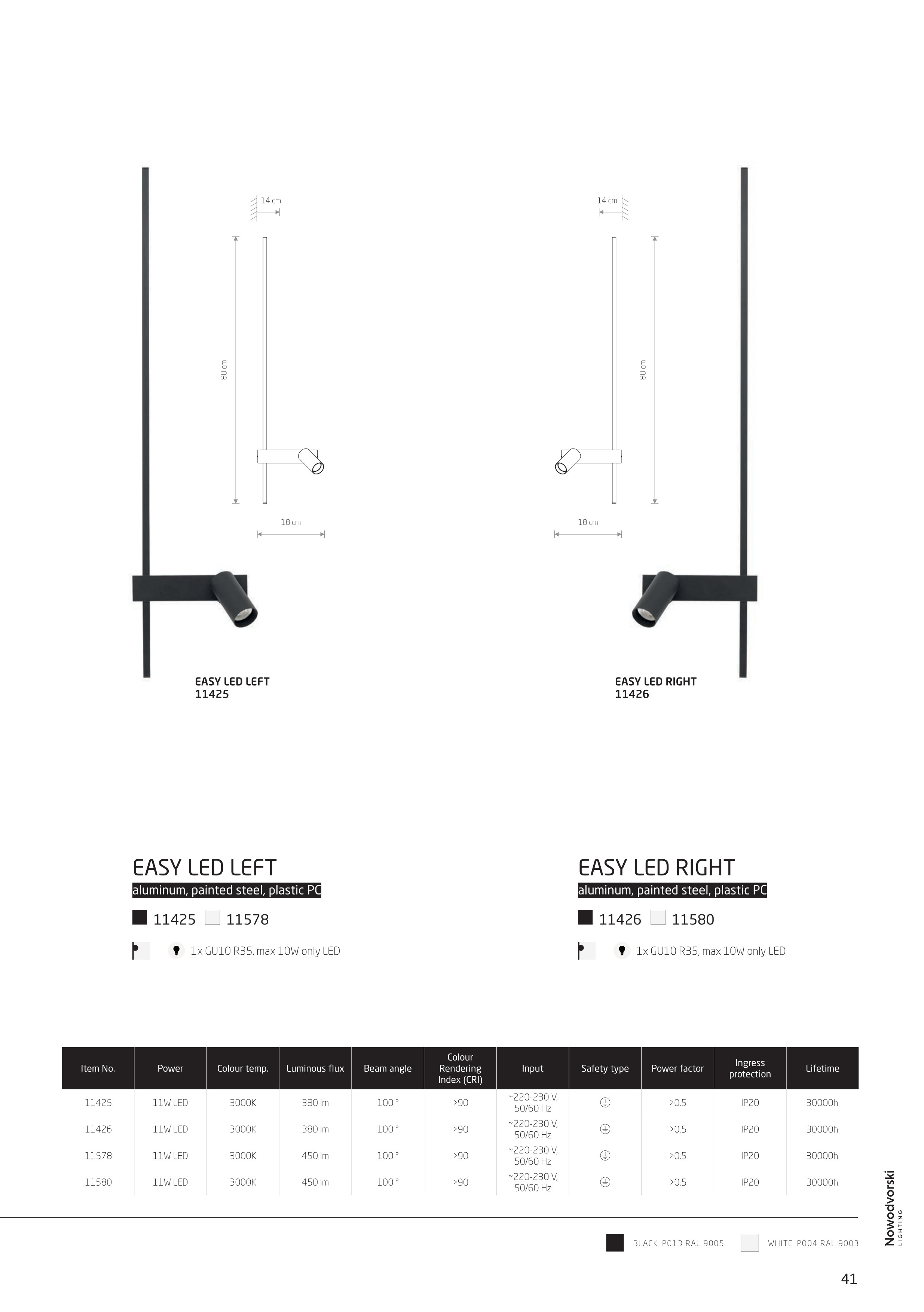 Лед аплик 11426 EASY LED RIGHT BLACK ще осигури комфорт и естетика във всяко помещение, в което се постави. Цялостната визия и дизайн на led лампата и вложените в изработката й материали, като стомана и алуминий в черен цвят, регулируем спот и индиректна светлина отдясно, два отделни превключвателя ON/OFF, ще допринесат за един неповторим стил. Благодарение на дългогодишния опит в производството на лед осветление, качествените материали и строгия контрол на качеството на изработка на производителя Nowodvorski (Полша), 11426 EASY LED RIGHT BLACK е на високо европейско ниво.