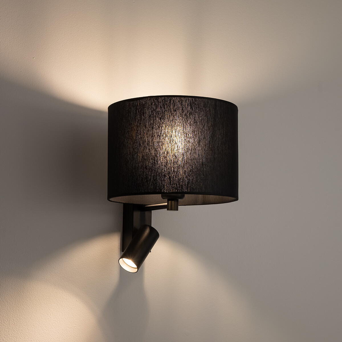 За стила и естетиката на обстановката допринасят, както цялостната визия и дизайн на осветителното тяло, така и вложените в изработката качествени материали, като: текстил в черен цвят, стомана в черно.