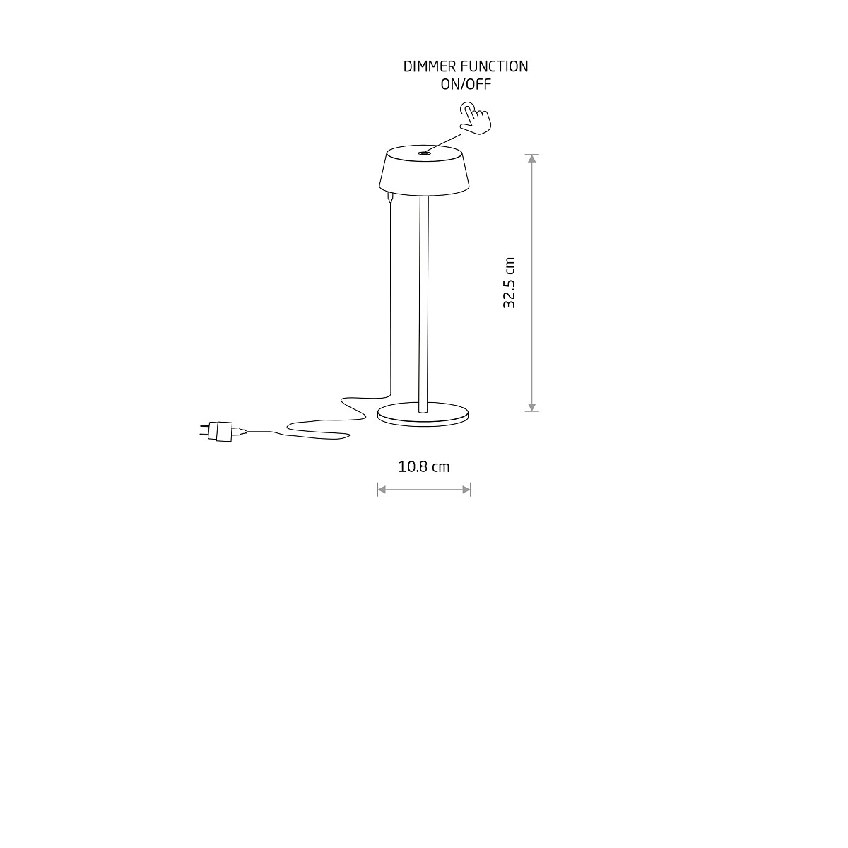 алуминий с покритие в пясъчен цвят, полимер, преносима лампа с USB тип С захранващ кабел, димиране чрез докосване от 10 до 100%