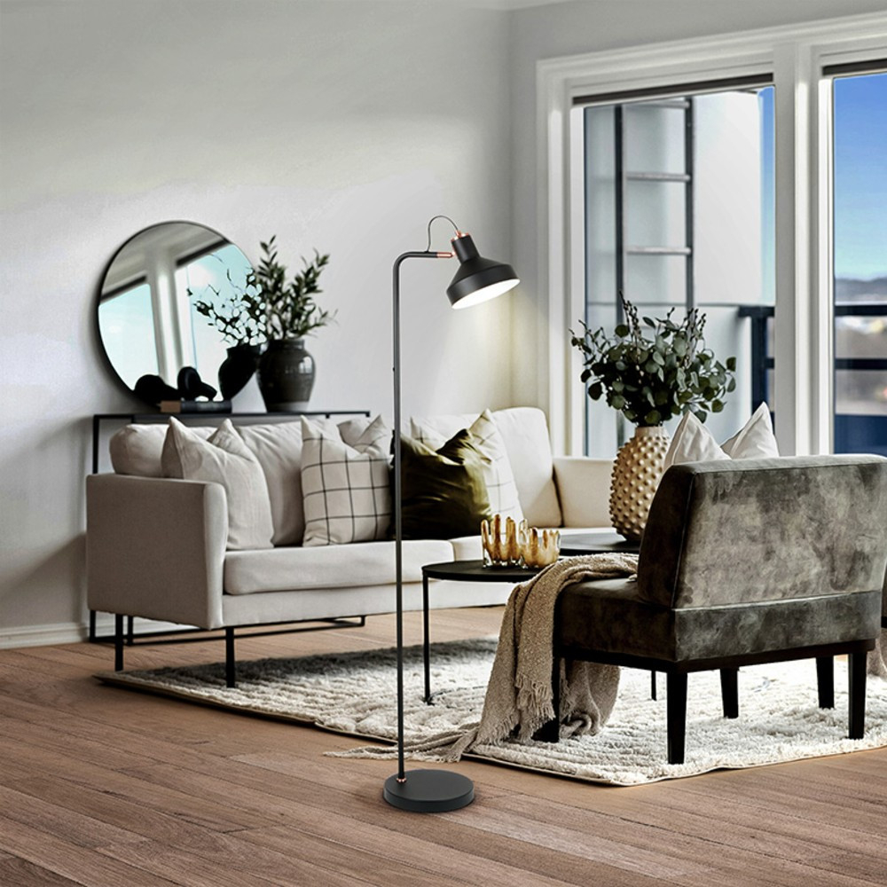 Осветителното тяло 12528 I3 - IRIAS - FLOOR LAMP 1L BLACK-COPPER ще осигури комфорт и естетика във всяко помещение, в което се постави. Цялостната визия и дизайн на лампата и вложените в изработката й материали, като метал с матово черно покритие, детайли в цвят мед сатен, ще допринесат за един неповторим стил. Благодарение на дългогодишния опит, качествените материали и строгия контрол на качеството на изработка на производителя Schuller (Испания), 12528 I3 - IRIAS - FLOOR LAMP 1L BLACK-COPPER е на високо европейско ниво.