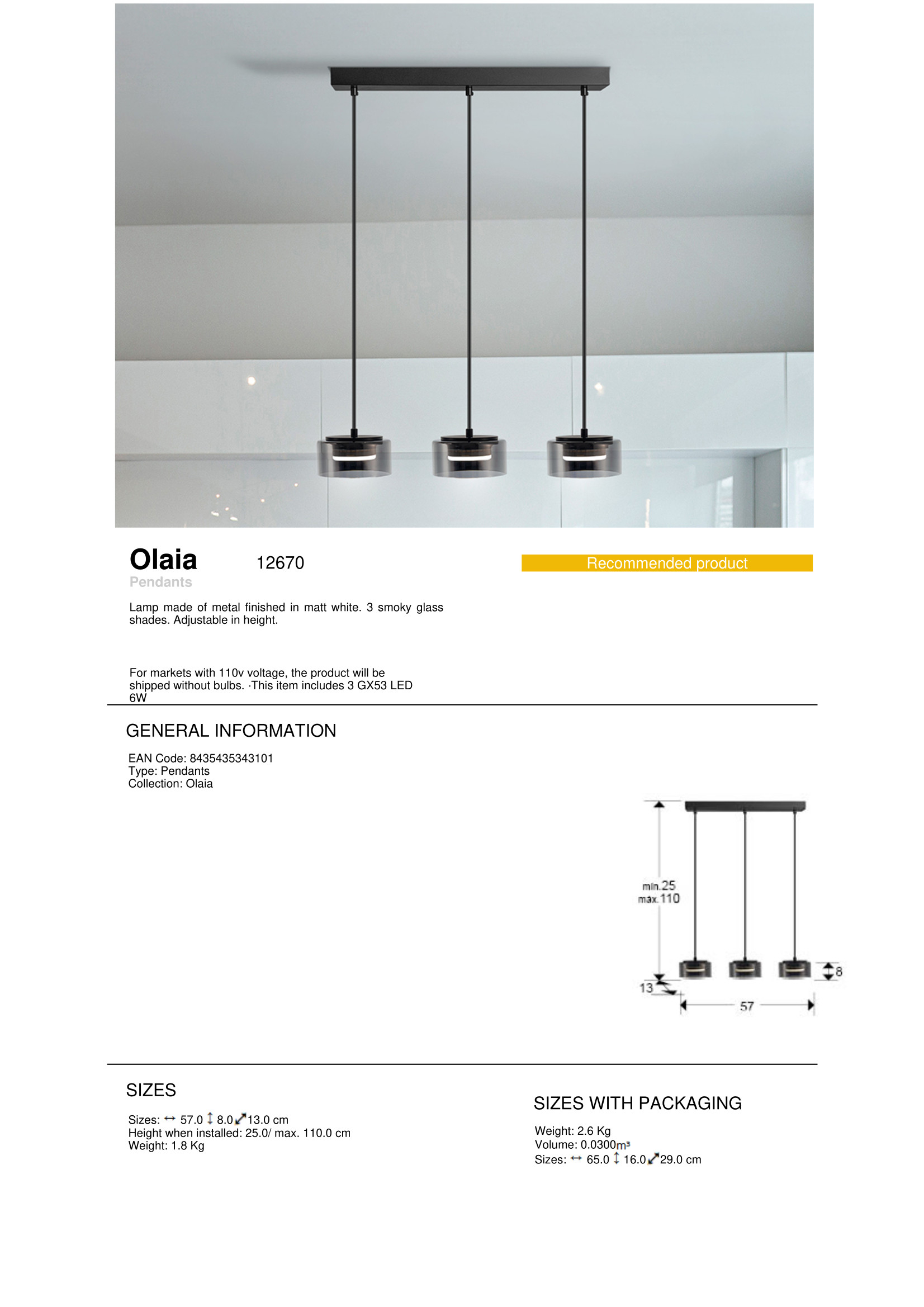 Магазини ОРИОН представят осветителното тяло 12670 OLAIA, което представлява полилей в съвременен стил. Лампата е част от категорията полилеи и е подходяща за различни помещения и пространства, като например всекидневна / хол, спалня, кухня, трапезария, офис.