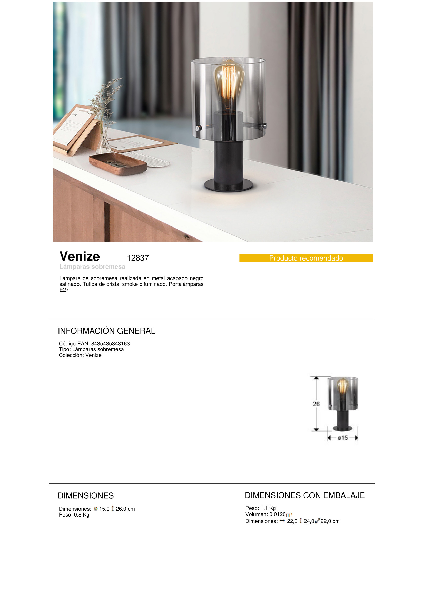 Магазини за за осветителни тела ОРИОН представят осветителното тяло 12837 I3 - VENIZE - TABLE LAMP 1L BLACK-SMOKE, което представлява настолна лампа, съдадено в съвременен стил. Като представител на категорията това осветително тяло е подходящо за различни помещения и пространства във Вашия дом или офис, като препоръчваме използването му, например за всекидневна / хол, спалня, трапезария, офис.