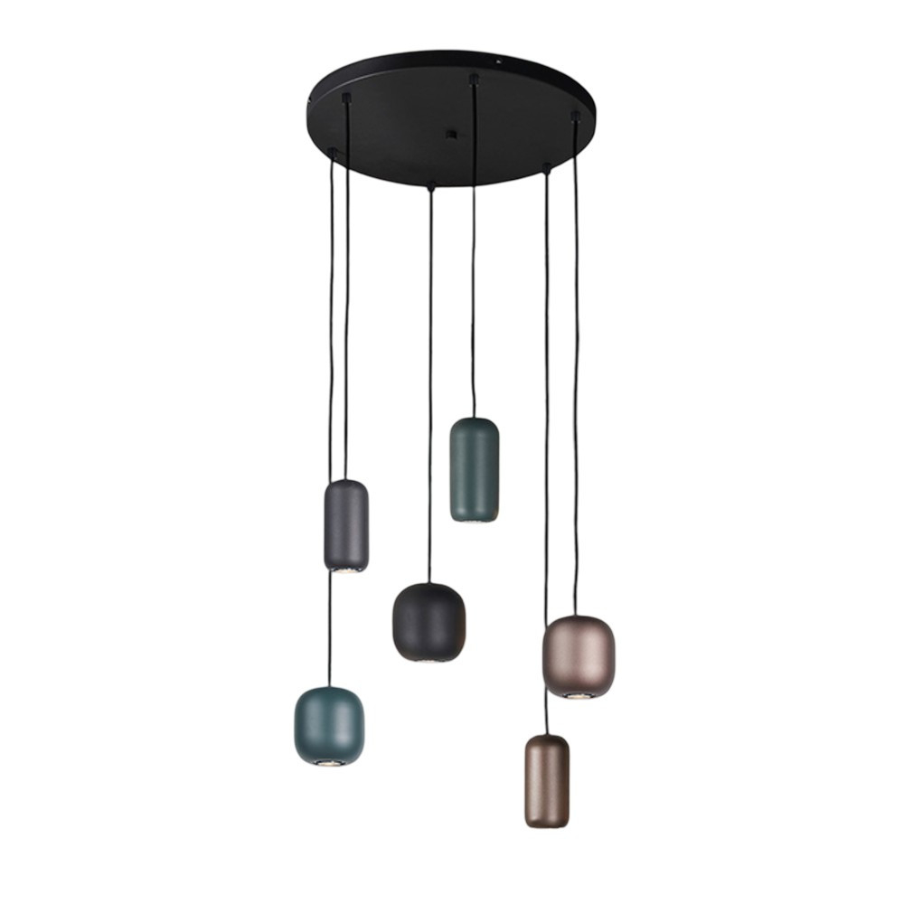 Осветителното тяло 12872 I3 - NIMES - LAMP 6L BLACK-COLOURS ще осигури комфорт и естетика във всяко помещение, в което се постави. Цялостната визия и дизайн на лампата и вложените в изработката й материали, като метал с матово черно покритие, 6 метални абажура в матово черно, тъмнокафяво и тъмнозелено, ще допринесат за един неповторим стил. Благодарение на дългогодишния опит, качествените материали и строгия контрол на качеството на изработка на производителя Schuller (Испания), 12872 I3 - NIMES - LAMP 6L BLACK-COLOURS е на високо европейско ниво.