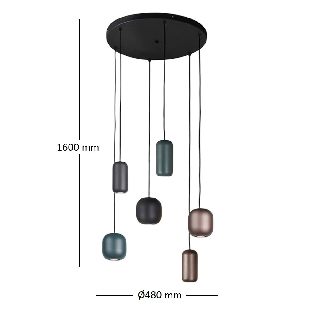 метал с матово черно покритие, 6 метални абажура в матово черно, тъмнокафяво и тъмнозелено