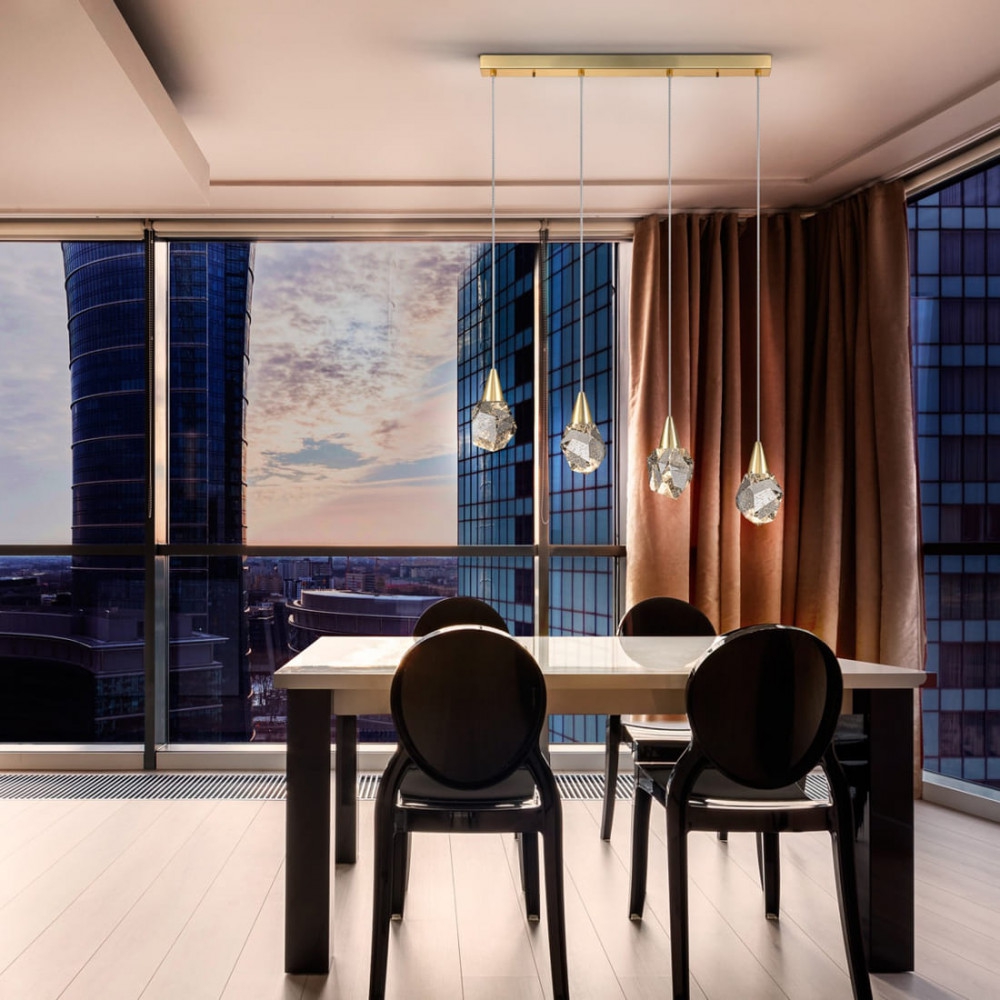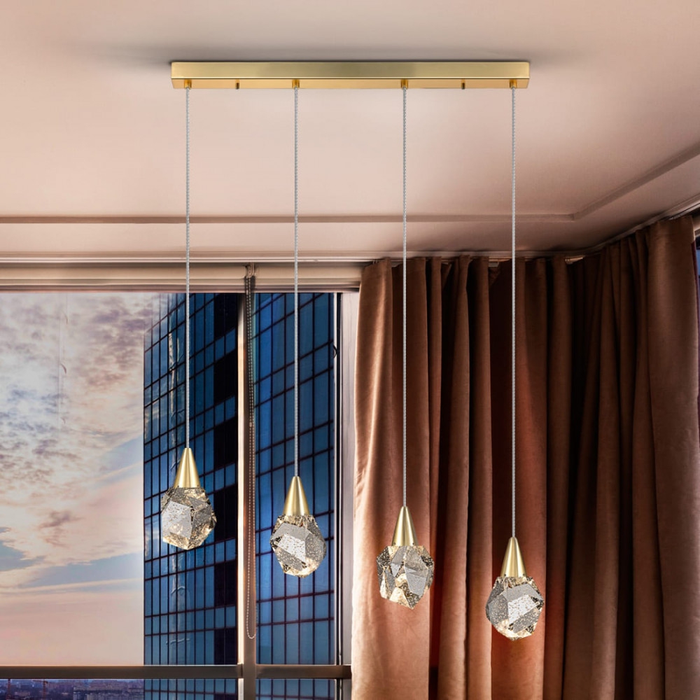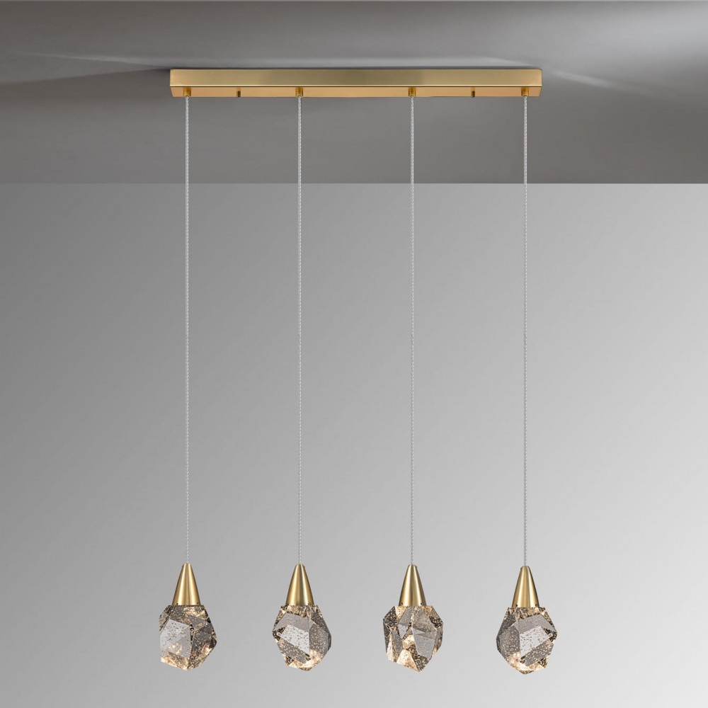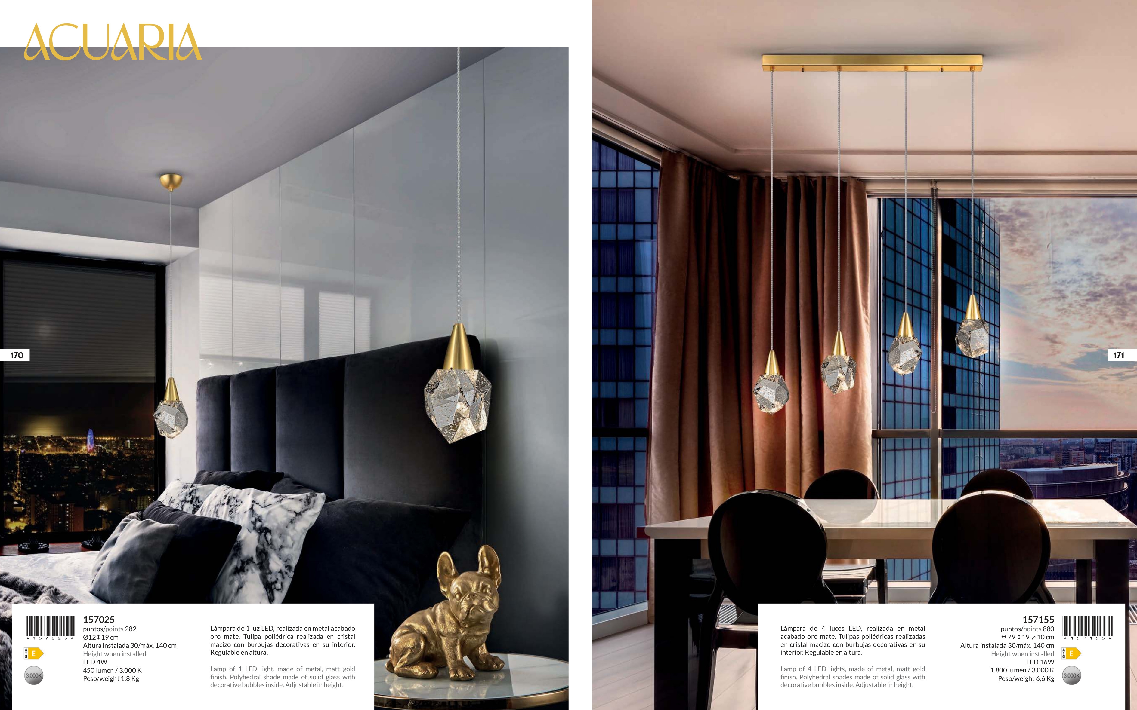 Лед полилей 157155 AQUARIA LAMP 4L MATT GOLD ще осигури комфорт и естетика във всяко помещение, в което се постави. Цялостната визия и дизайн на led лампата и вложените в изработката й материали, като метал с матово златно покритие, многостенни абажури от масивно стъкло с декоративни балончета вътре, регулируема на височина, ще допринесат за един неповторим стил. Благодарение на дългогодишния опит в производството на лед осветление, качествените материали и строгия контрол на качеството на изработка на производителя Schuller (Испания), 157155 AQUARIA LAMP 4L MATT GOLD е на високо европейско ниво.