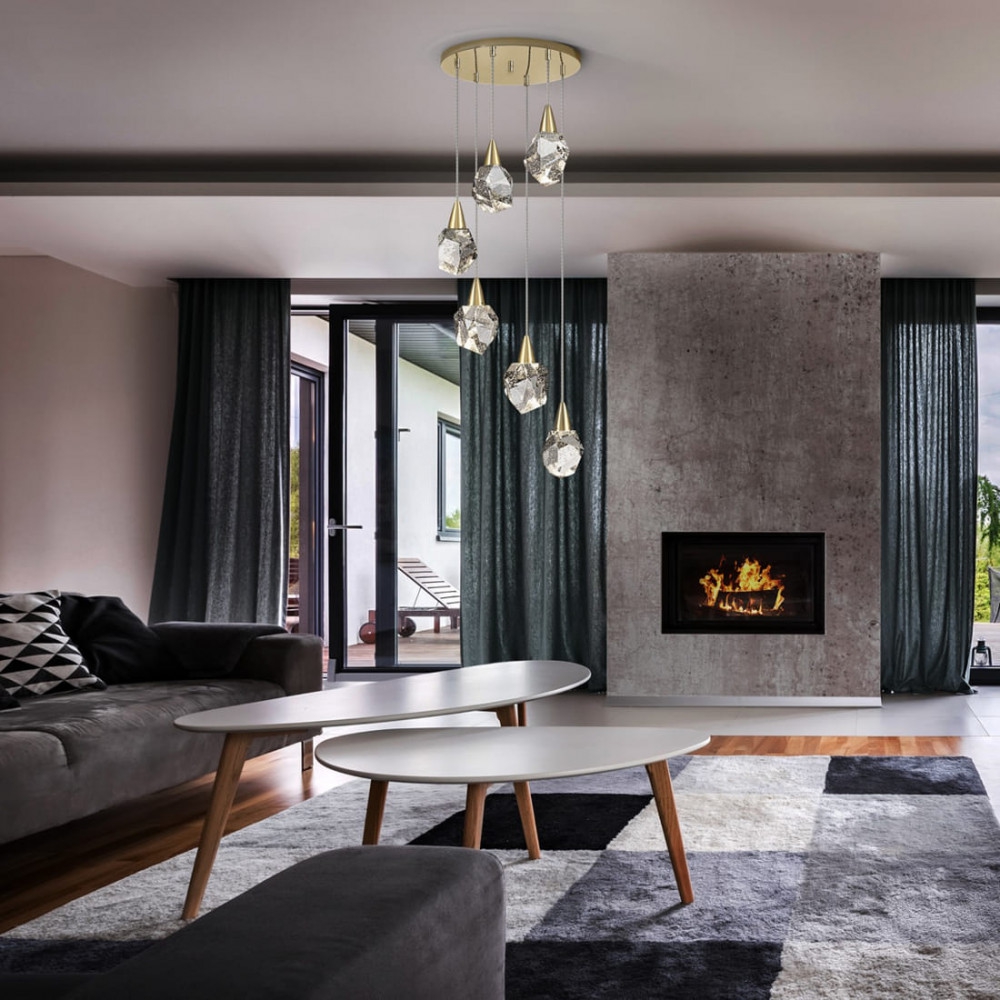 Осветителното тяло 157261 AQUARIA LAMP 6L MATT GOLD представлява полилей в съвременен, дизайнерски стил. 157261 AQUARIA LAMP 6L MATT GOLD е от категорията осветителни тела и е подходящо за осветяване на различни помещения и пространства като: всекидневна / хол, спалня, кухня, трапезария, офис.