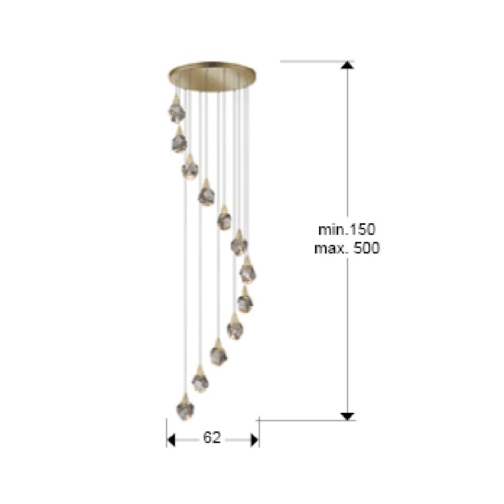 Осветителното тяло 157322 AQUARIA LAMP 12L MATT GOLD представлява лед полилей в съвременен, дизайнерски стил. 157322 AQUARIA LAMP 12L MATT GOLD е от категорията и е подходящо за осветяване на различни помещения и пространства като: всекидневна / хол, спалня, кухня, трапезария, офис.