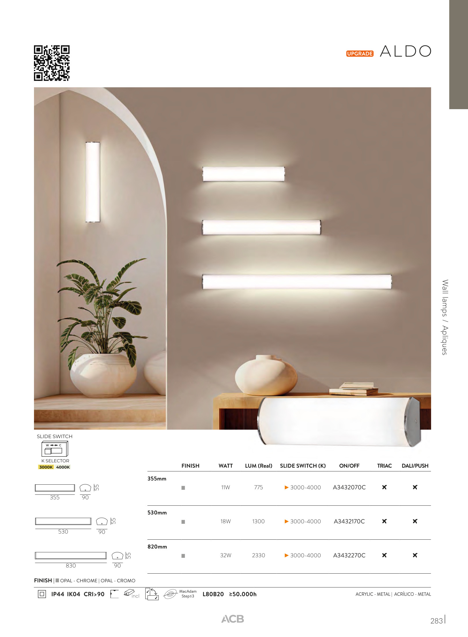 Осветителното тяло A3432070C ще осигури комфорт и естетика във всяко помещение, в което се постави. Цялостната визия и дизайн на лампата и вложените в изработката й материали, като хромиран метал, полимер в цвят бял опал, възможност за смяна на цветната температура ССТ 3000/4000К с плъзгач, ще допринесат за един неповторим стил. Благодарение на дългогодишния опит, качествените материали и строгия контрол на качеството на изработка на производителя ACB (Испания), A3432070C е на високо европейско ниво.