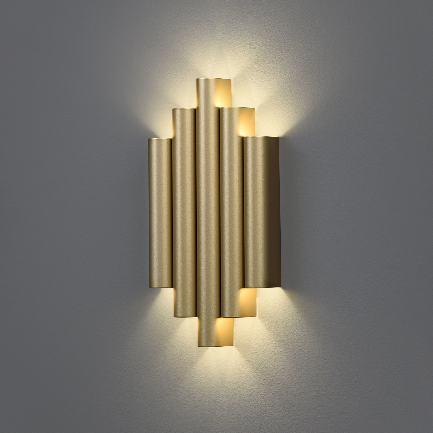 Осветителното тяло A38140O (16/3814 10x2,1W/3000K Wall Tech Gold) представлява аплик в съвременен стил. A38140O (16/3814 10x2,1W/3000K Wall Tech Gold) е от категорията осветителни тела и е подходящо за осветяване на различни помещения и пространства като: всекидневна / хол, спалня, кухня, трапезария, коридор, антре, стълбище, офис.