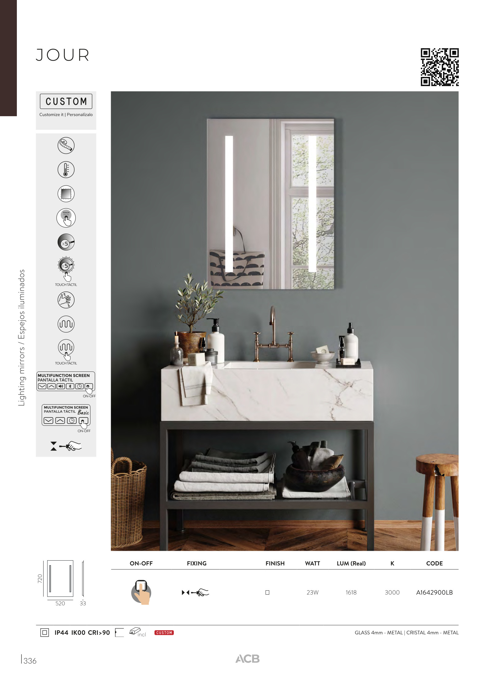 Осветителното тяло A1642900LB (16/429-1 21W/3000K IP44) ще осигури комфорт и естетика във всяко помещение, в което се постави. Цялостната визия и дизайн на лампата и вложените в изработката й материали, като огледало 3.3mm, метал, възможност за персонализиране, ще допринесат за един неповторим стил. Благодарение на дългогодишния опит, качествените материали и строгия контрол на качеството на изработка на производителя ACB (Испания), A1642900LB (16/429-1 21W/3000K IP44) е на високо европейско ниво.