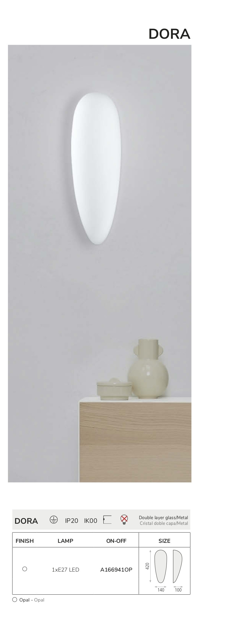 Осветителното тяло A166941OP (16/694 E27 1x20W Opal) представлява аплик в съвременен стил. A166941OP (16/694 E27 1x20W Opal) е от категорията осветителни тела и е подходящо за осветяване на различни помещения и пространства като: всекидневна / хол, спалня, кухня, трапезария, коридор, антре, стълбище, офис.