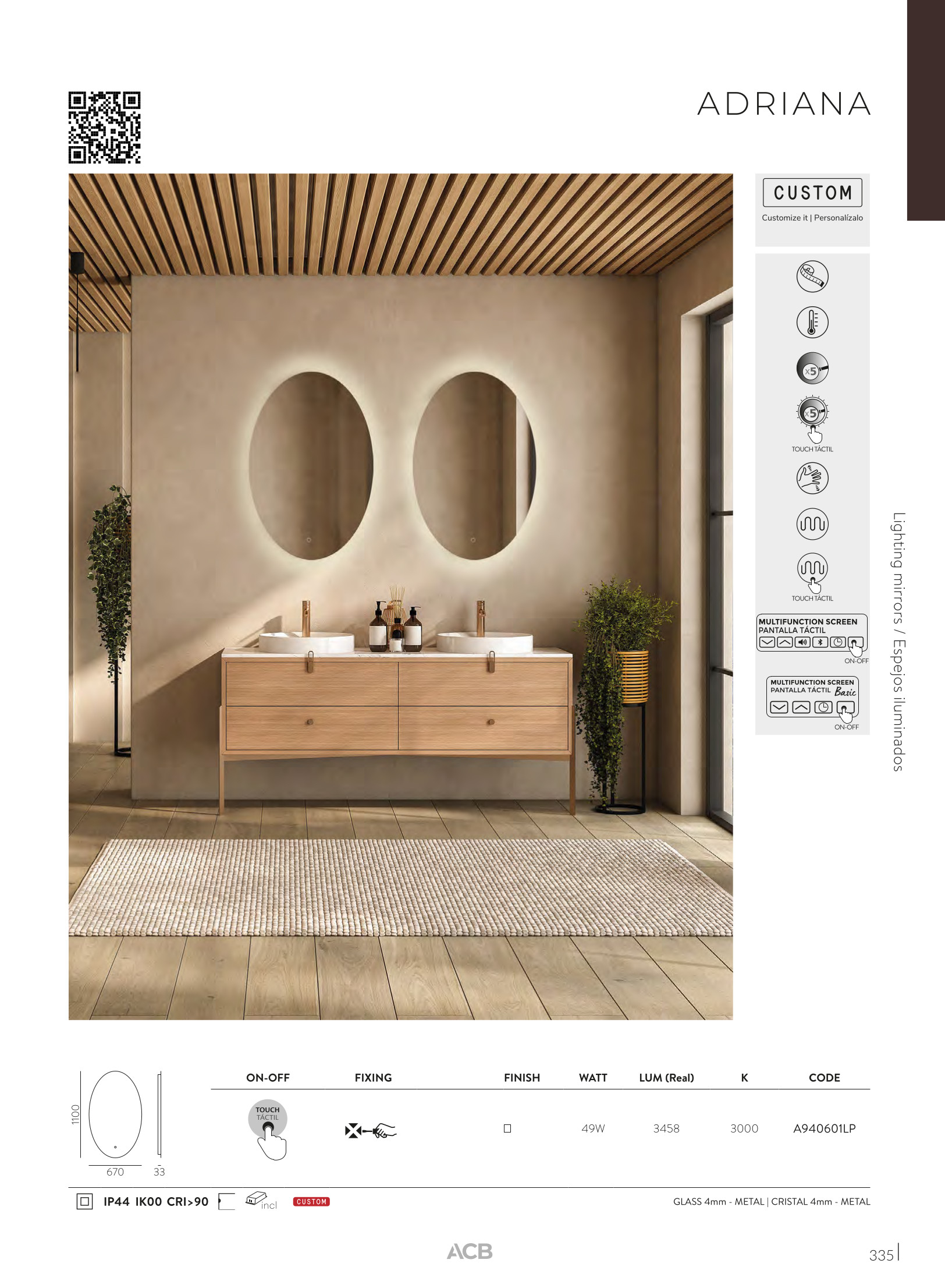 Осветителното тяло A940601LP (16/9406 38W/3000K IP44) ще осигури комфорт и естетика във всяко помещение, в което се постави. Цялостната визия и дизайн на лампата и вложените в изработката й материали, като огледало 4mm, метал, възможност за персонализиране, ще допринесат за един неповторим стил. Благодарение на дългогодишния опит, качествените материали и строгия контрол на качеството на изработка на производителя ACB (Испания), A940601LP (16/9406 38W/3000K IP44) е на високо европейско ниво.