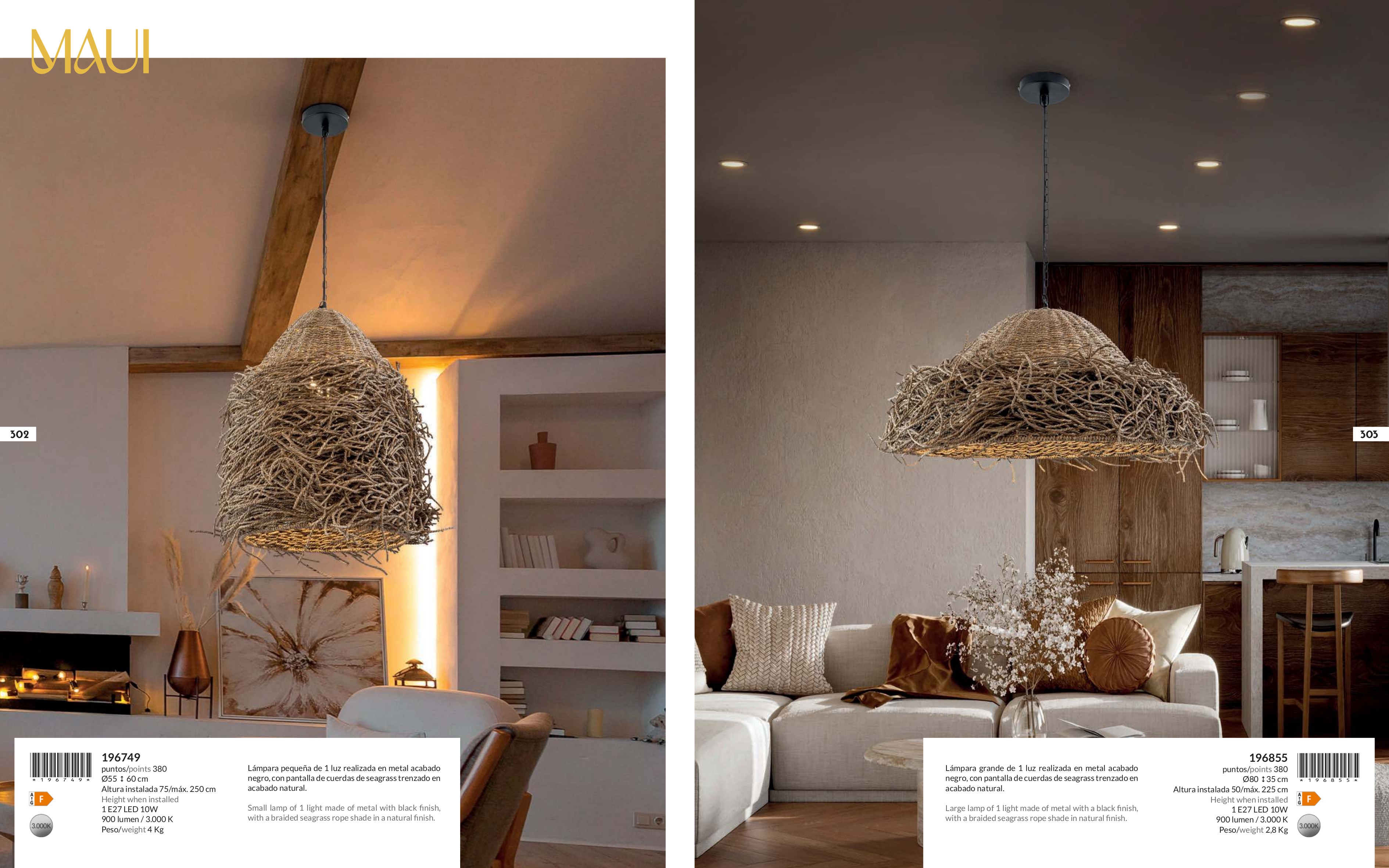 Осветителното тяло 196855 D80 ще осигури комфорт и естетика във всяко помещение, в което се постави. Цялостната визия и дизайн на лампата и вложените в изработката й материали, като метал с черно покритие, въже от морска трева в естествен цвят, ще допринесат за един неповторим стил. Благодарение на дългогодишния опит, качествените материали и строгия контрол на качеството на изработка на производителя Schuller (Испания), 196855 D80 е на високо европейско ниво.