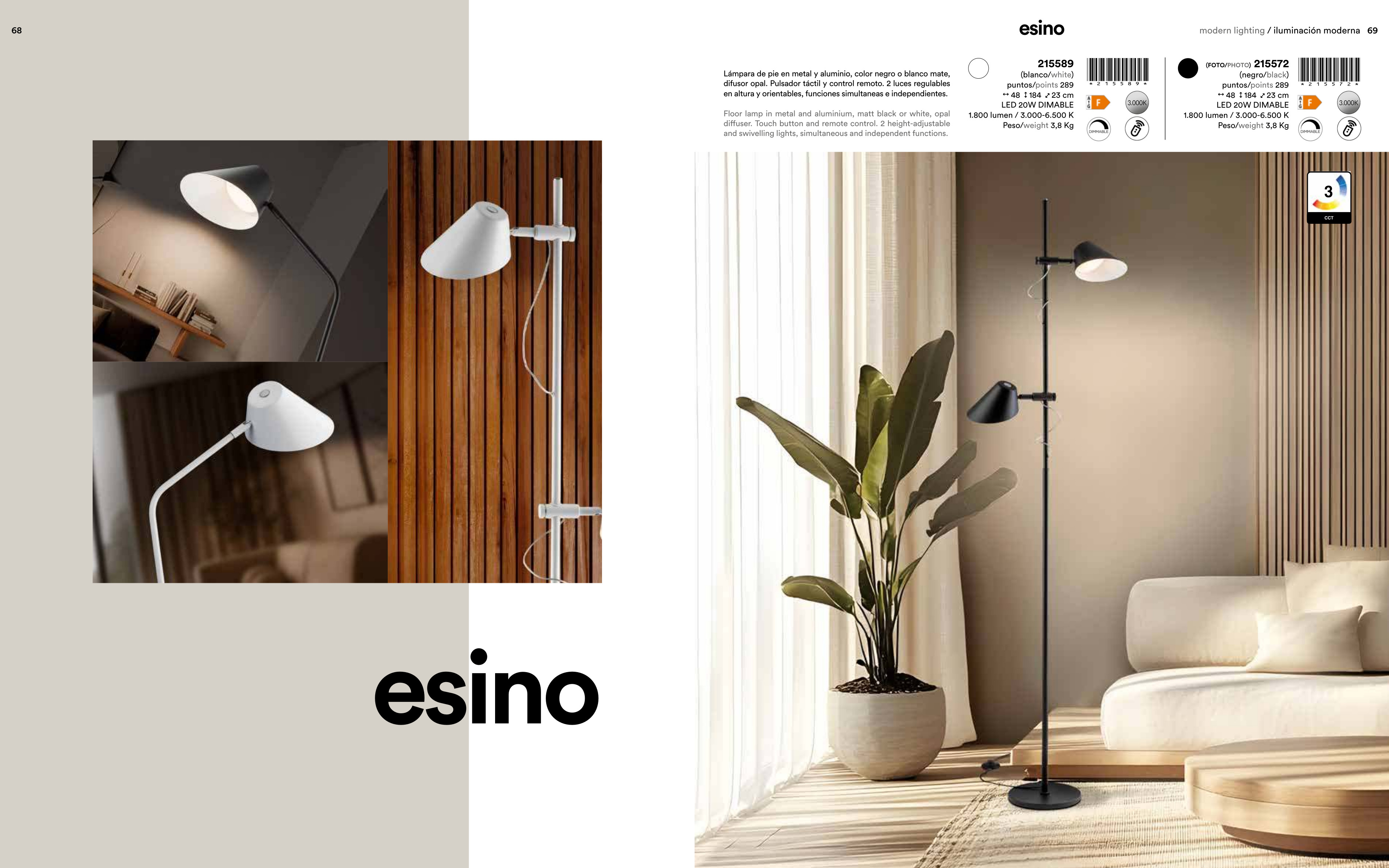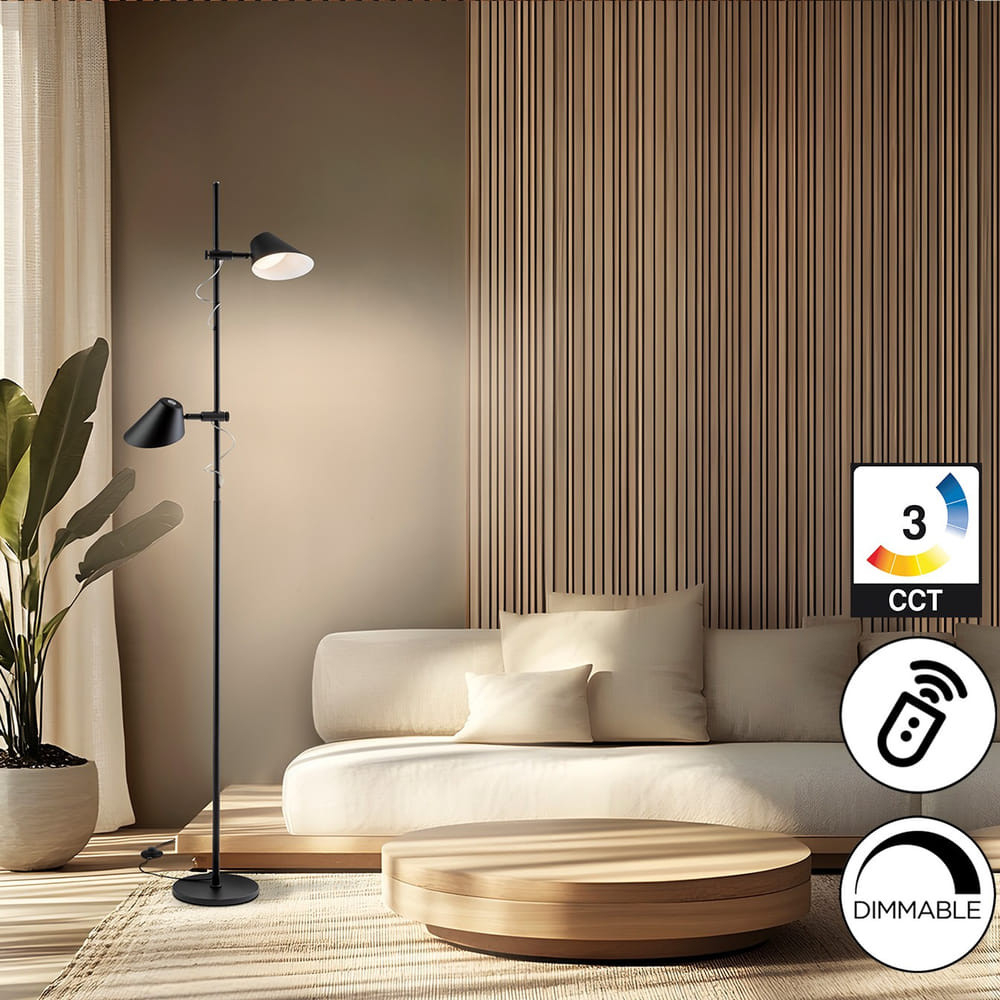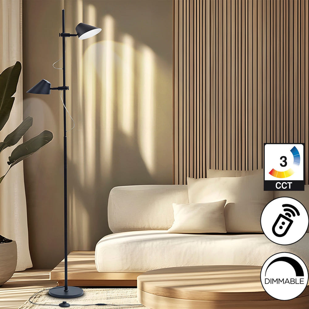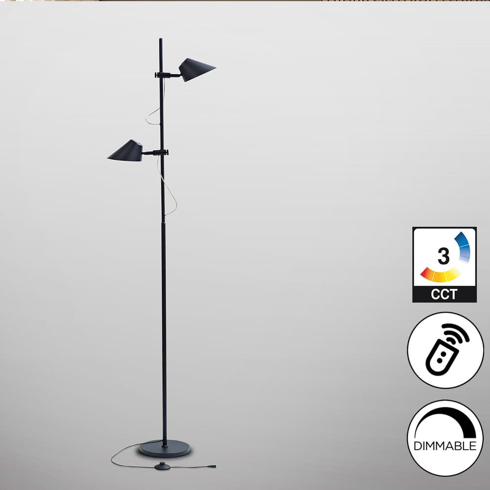 Лед лампион / правостояща лампа 215572 ESINO - FLOOR LAMP 2L BLACK ще осигури комфорт и естетика във всяко помещение, в което се постави. Цялостната визия и дизайн на led лампата и вложените в изработката й материали, като метал, алуминий и ABS с матово черно покритие, разсейвател в опалово бяло, сензорно и дистанционно управление, димируема и с контрол на цветната температура ССТ 3000K-6500K, ще допринесат за един неповторим стил. Благодарение на дългогодишния опит в производството на лед осветление, качествените материали и строгия контрол на качеството на изработка на производителя Schuller (Испания), 215572 ESINO - FLOOR LAMP 2L BLACK е на високо европейско ниво.