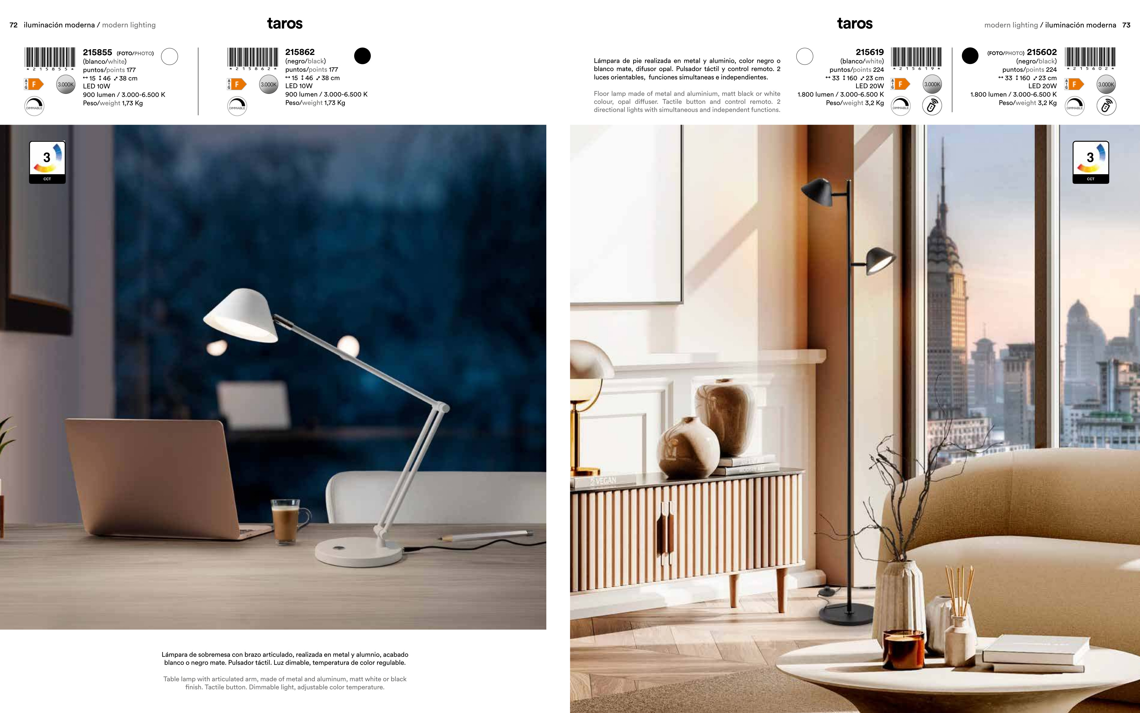 Осветителното тяло 215862 TAROS TL1 10W/3000-6500K CCT BLACK представлява лед настолна лампа в съвременен стил. 215862 TAROS TL1 10W/3000-6500K CCT BLACK е от категорията и е подходящо за осветяване на различни помещения и пространства като: всекидневна / хол, спалня, трапезария, офис.