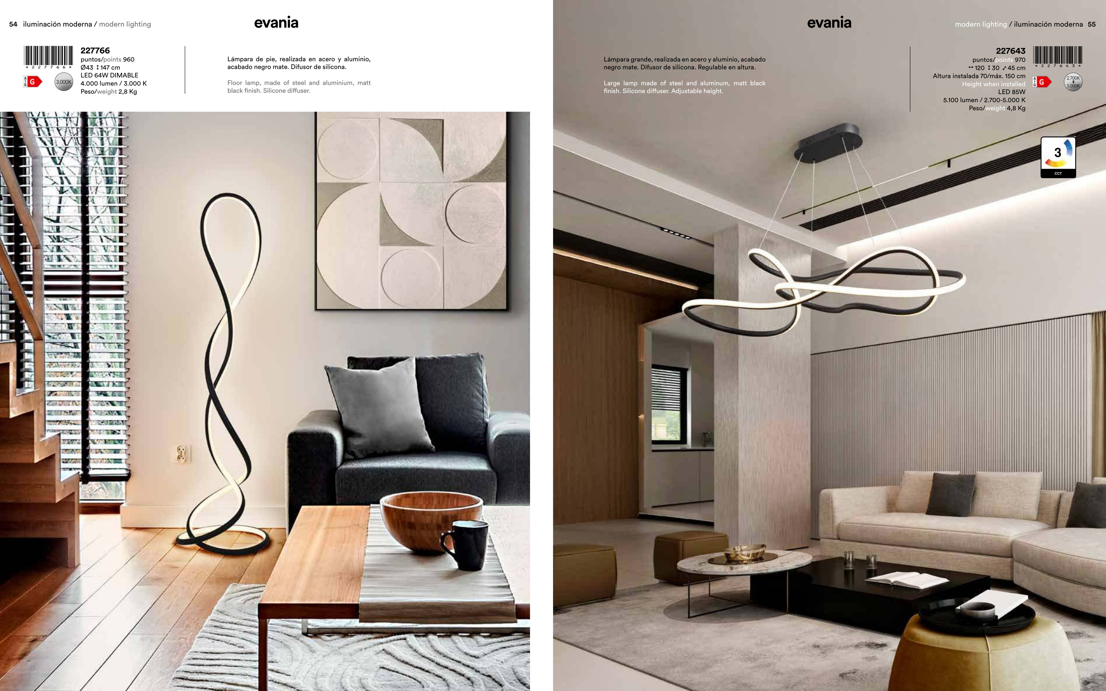 Лед полилей 227643 Evania ще осигури комфорт и естетика във всяко помещение, в което се постави. Цялостната визия и дизайн на led лампата и вложените в изработката й материали, като стомана и алуминий с матово черно покритие, разсейвател на светлината от силикон, димер и радиочестотно дистанционно управление за регулиране на интензитета и цветната температура CCT 2700-5000K, ще допринесат за един неповторим стил. Благодарение на дългогодишния опит в производството на лед осветление, качествените материали и строгия контрол на качеството на изработка на производителя Schuller (Испания), 227643 Evania е на високо европейско ниво.