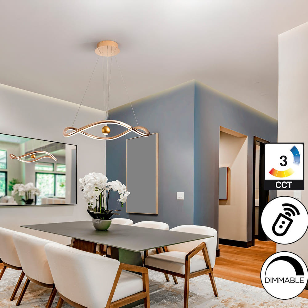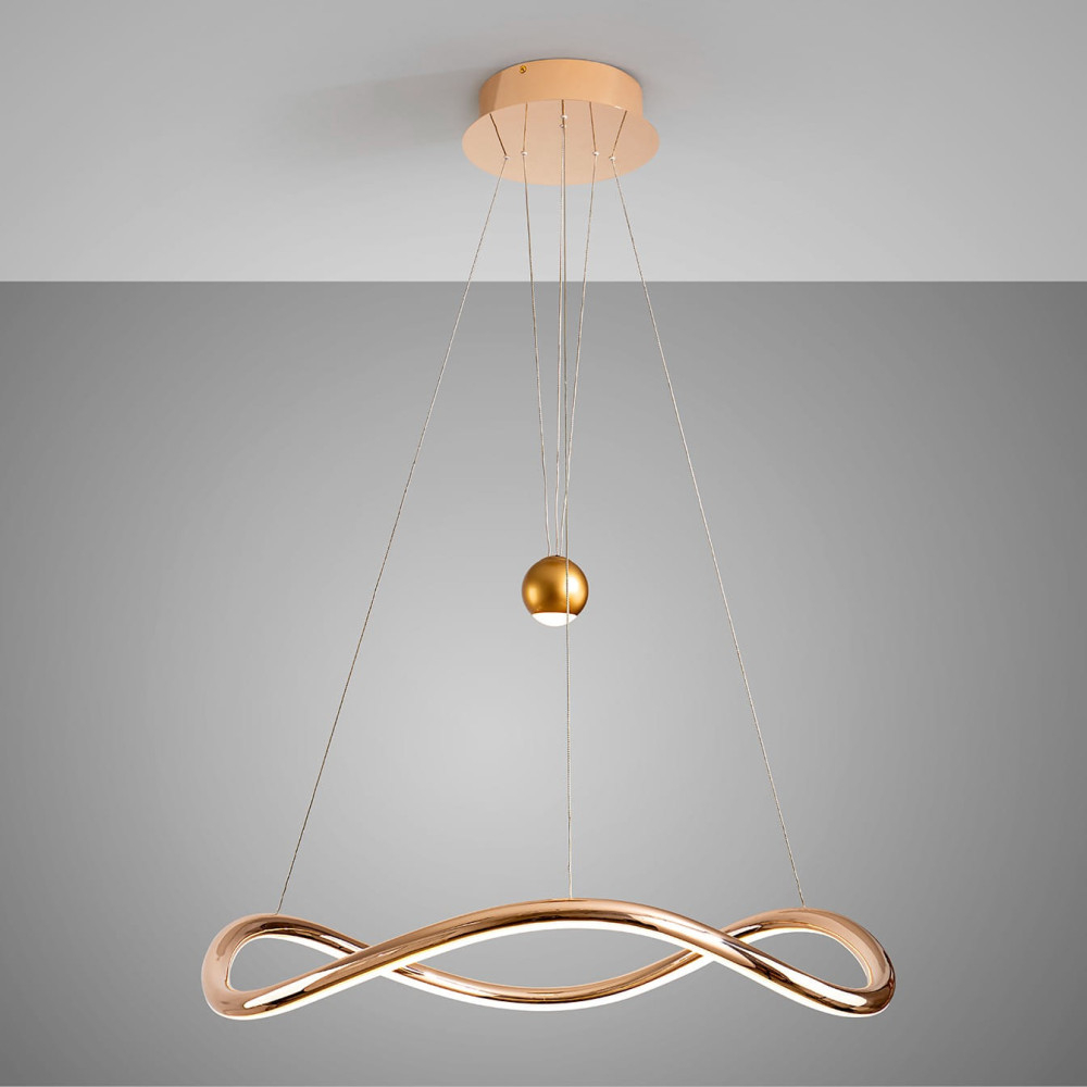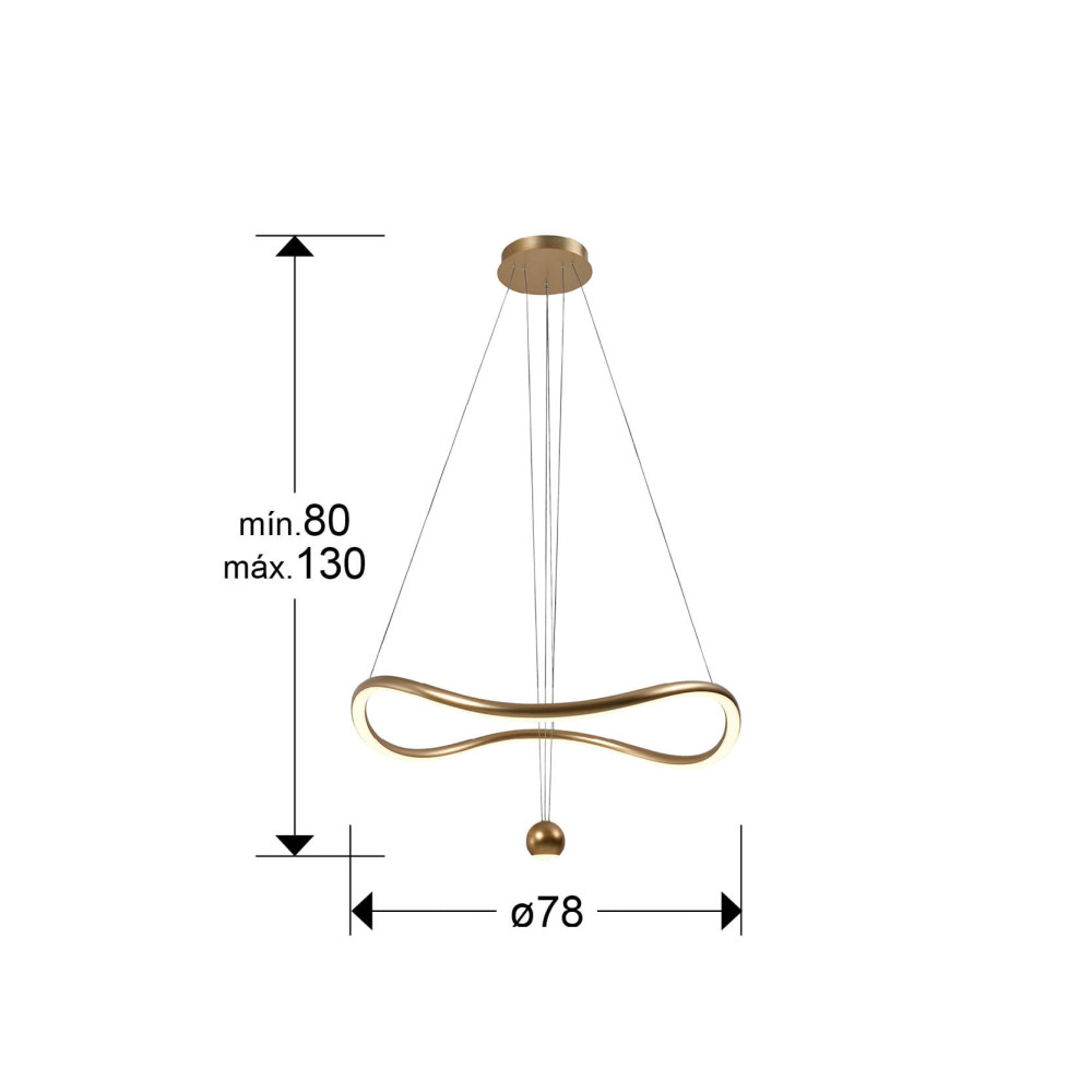 алуминий и стомана с лъскаво златно покритие, опалов силиконов разсейвател, височината може да се регулира ръчно чрез издърпване на централната топка, димируема, CCT 2700-5000K