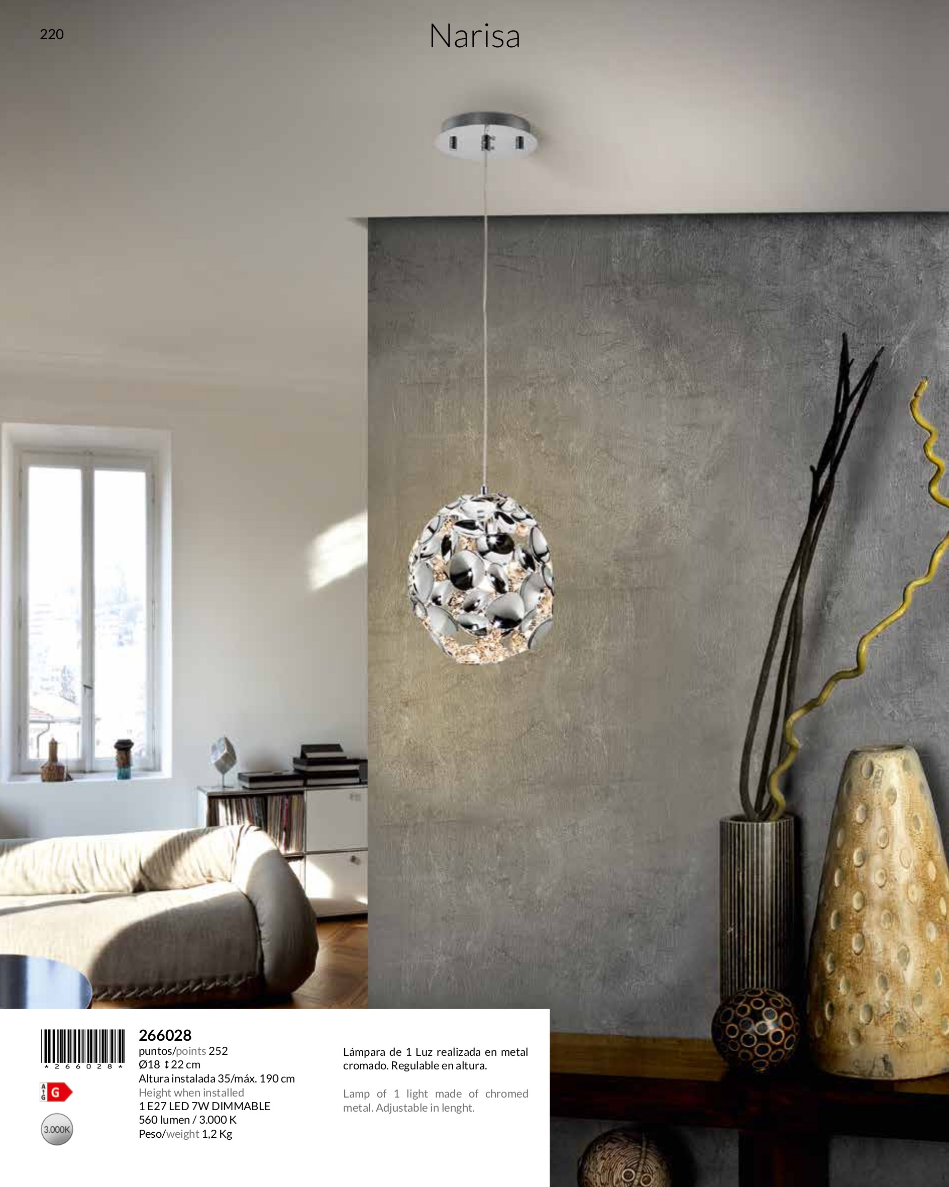 Осветителното тяло 266028 d17 1xЕ27 ще осигури комфорт и естетика във всяко помещение, в което се постави. Цялостната визия и дизайн на лампата и вложените в изработката й материали, като хромиран метал, ще допринесат за един неповторим стил. Благодарение на дългогодишния опит, качествените материали и строгия контрол на качеството на изработка на производителя Schuller (Испания), 266028 d17 1xЕ27 е на високо европейско ниво.