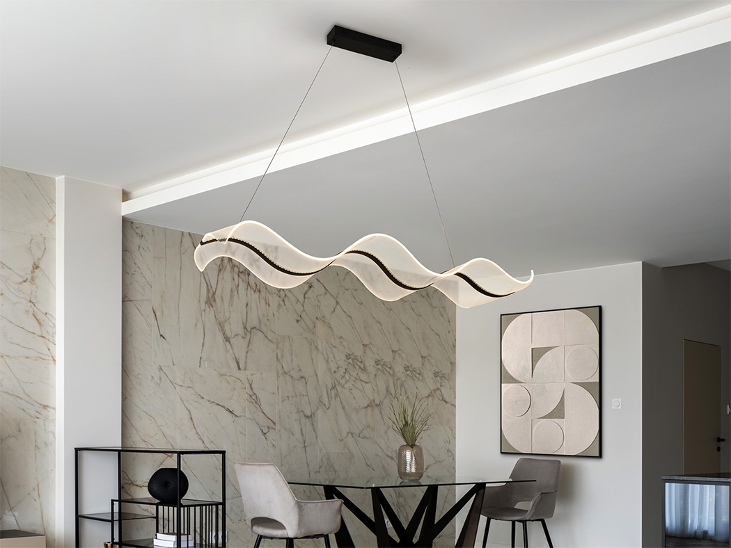 Лед полилей 268213 OLAS - BLACK LAMP ще осигури комфорт и естетика във всяко помещение, в което се постави. Цялостната визия и дизайн на led лампата и вложените в изработката й материали, като стомана и алуминий в цвят черен мат, формован във форма на вълна метакрилатен дифузьор с микропечат, ССТ 2700-5500K, ще допринесат за един неповторим стил. Благодарение на дългогодишния опит в производството на лед осветление, качествените материали и строгия контрол на качеството на изработка на производителя Schuller (Испания), 268213 OLAS - BLACK LAMP е на високо европейско ниво.