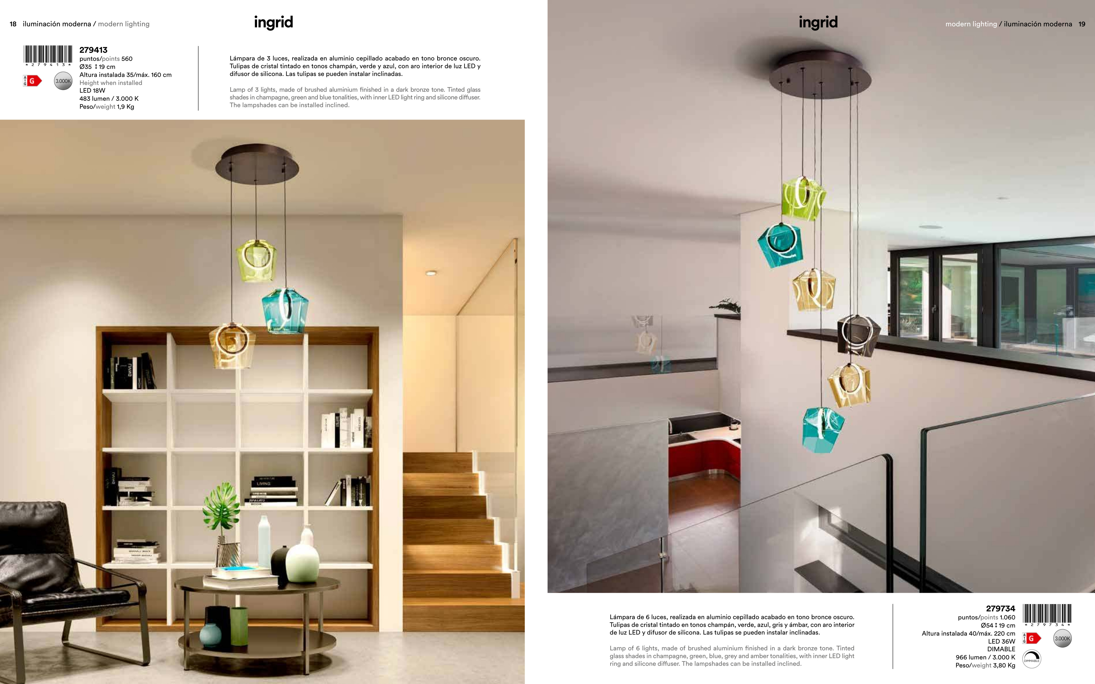 Осветителното тяло 279413 INGRID - LAMP 3L COLOURS представлява лед полилей в съвременен, дизайнерски стил. 279413 INGRID - LAMP 3L COLOURS е от категорията и е подходящо за осветяване на различни помещения и пространства като: всекидневна / хол, спалня, кухня, трапезария, офис.