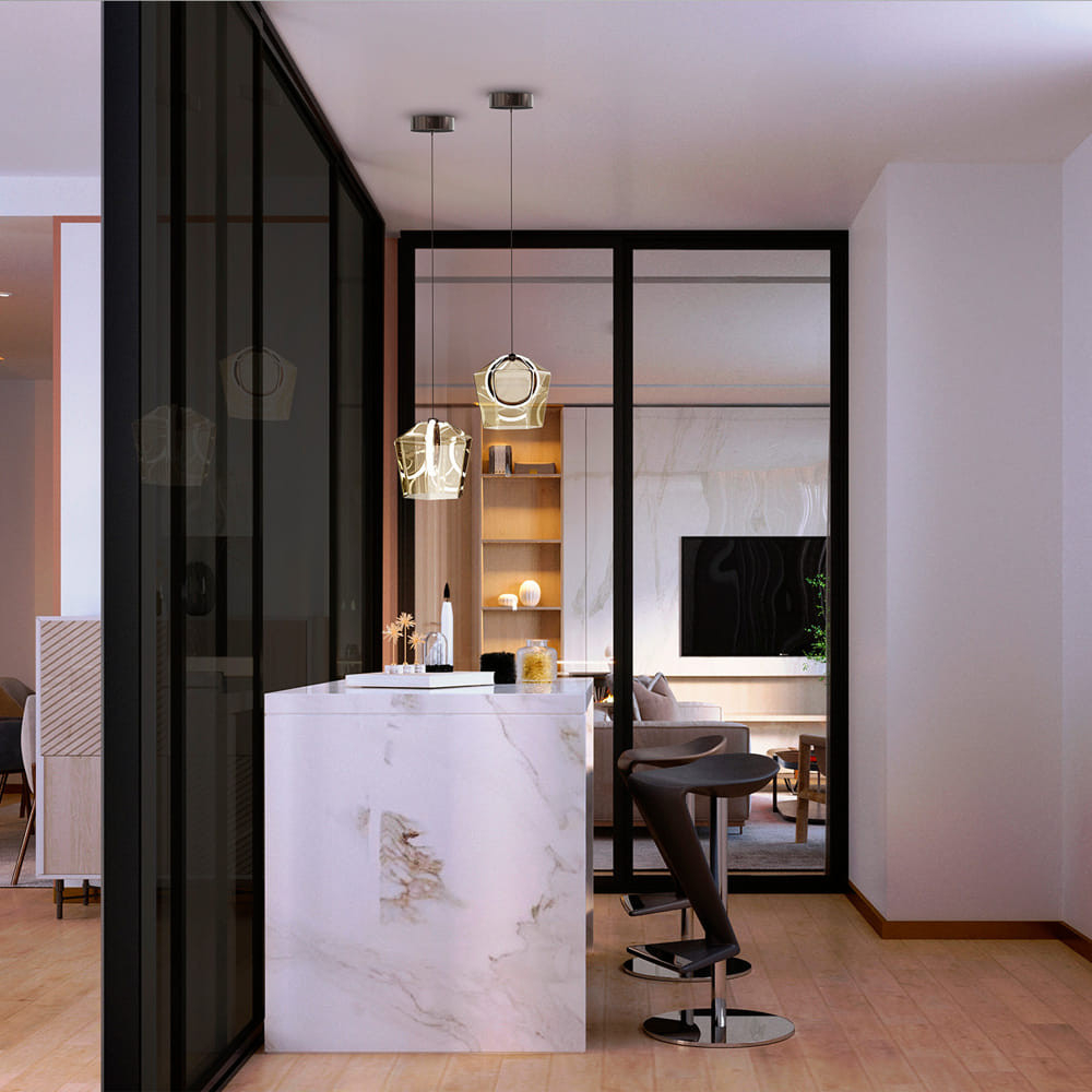 полиран алуминий в цвят тъмен бронз, тонирано стъкло в цвят шампанско, вътрешен LED тороид от силикон