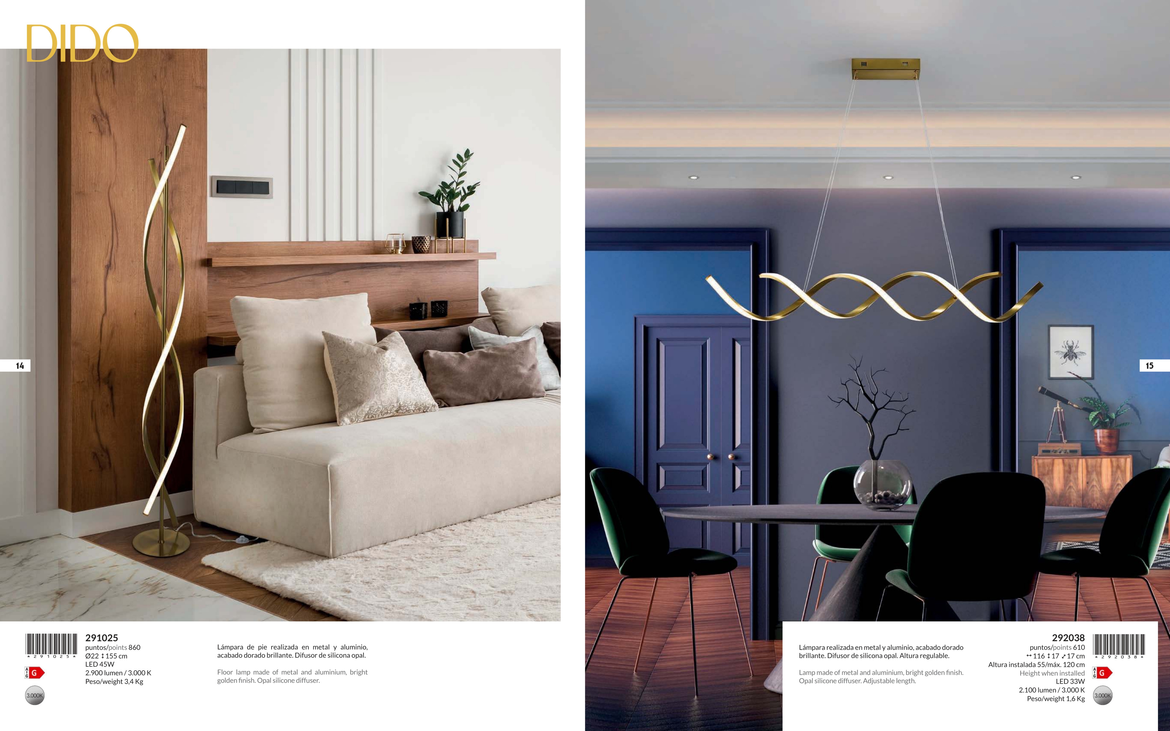 Осветителното тяло 292038 DIDO - GOLDEN LAMP ще осигури комфорт и естетика във всяко помещение, в което се постави. Цялостната визия и дизайн на лампата и вложените в изработката й материали, като метал и алуминий в цвят злато, силиконов дифузер в цвят бял опал, ще допринесат за един неповторим стил. Благодарение на дългогодишния опит, качествените материали и строгия контрол на качеството на изработка на производителя Schuller (Испания), 292038 DIDO - GOLDEN LAMP е на високо европейско ниво.