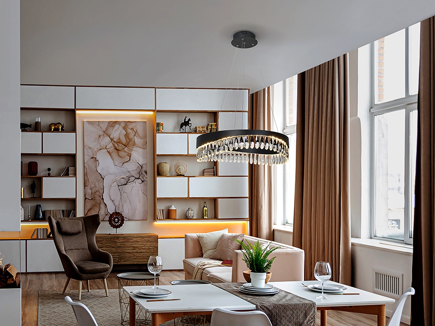 Лед полилей 294720 ще осигури комфорт и естетика във всяко помещение, в което се постави. Цялостната визия и дизайн на led лампата и вложените в изработката й материали, като метал и алуминий с матово черно покритие, дифузер съставен от фасетирани кристални капки, ще допринесат за един неповторим стил. Благодарение на дългогодишния опит в производството на лед осветление, качествените материали и строгия контрол на качеството на изработка на производителя Schuller (Испания), 294720 е на високо европейско ниво.