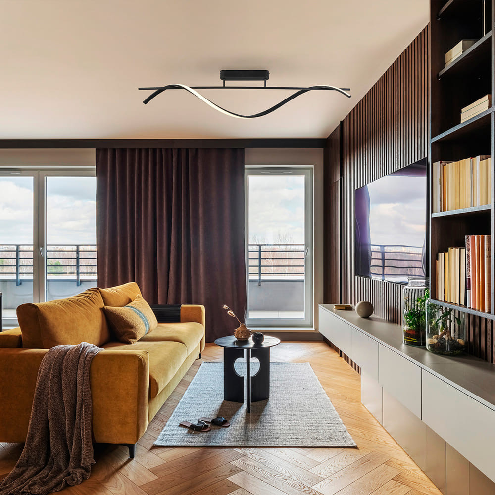 Осветителното тяло 307642 BOA - BLACK CEILING LAMP ще осигури комфорт и естетика във всяко помещение, в което се постави. Цялостната визия и дизайн на лампата и вложените в изработката й материали, като метал в матово черен цвят, разсейвател на светлината от силикон в цвят бял опал, дистанционно за контрол на интензитета на светлина и цветната температура ССТ 2700-5000 K, ще допринесат за един неповторим стил. Благодарение на дългогодишния опит, качествените материали и строгия контрол на качеството на изработка на производителя Schuller (Испания), 307642 BOA - BLACK CEILING LAMP е на високо европейско ниво.
