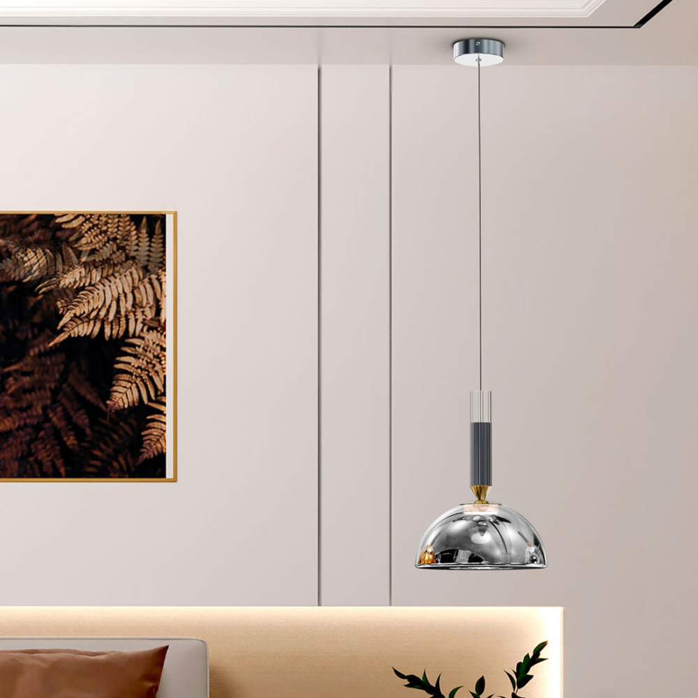 полиран алуминий с тъмно сиво покритие, абажури от блестящо стъкло с електролитно покритие в сребриста тоналност