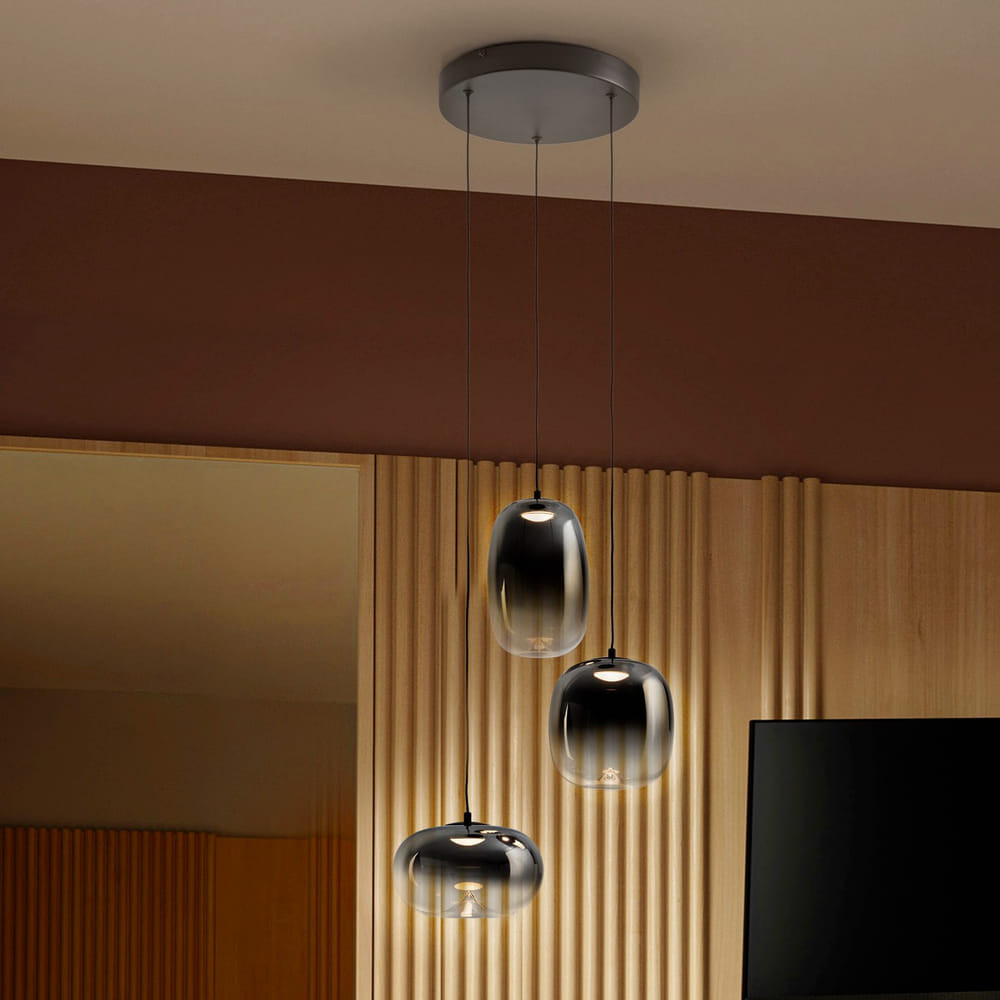 Осветителното тяло 314213 ONICE - LAMP 3L BLACK-SMOKE D30 представлява лед полилей в съвременен стил. 314213 ONICE - LAMP 3L BLACK-SMOKE D30 е от категорията и е подходящо за осветяване на различни помещения и пространства като: всекидневна / хол, спалня, кухня, трапезария, коридор, антре, офис.