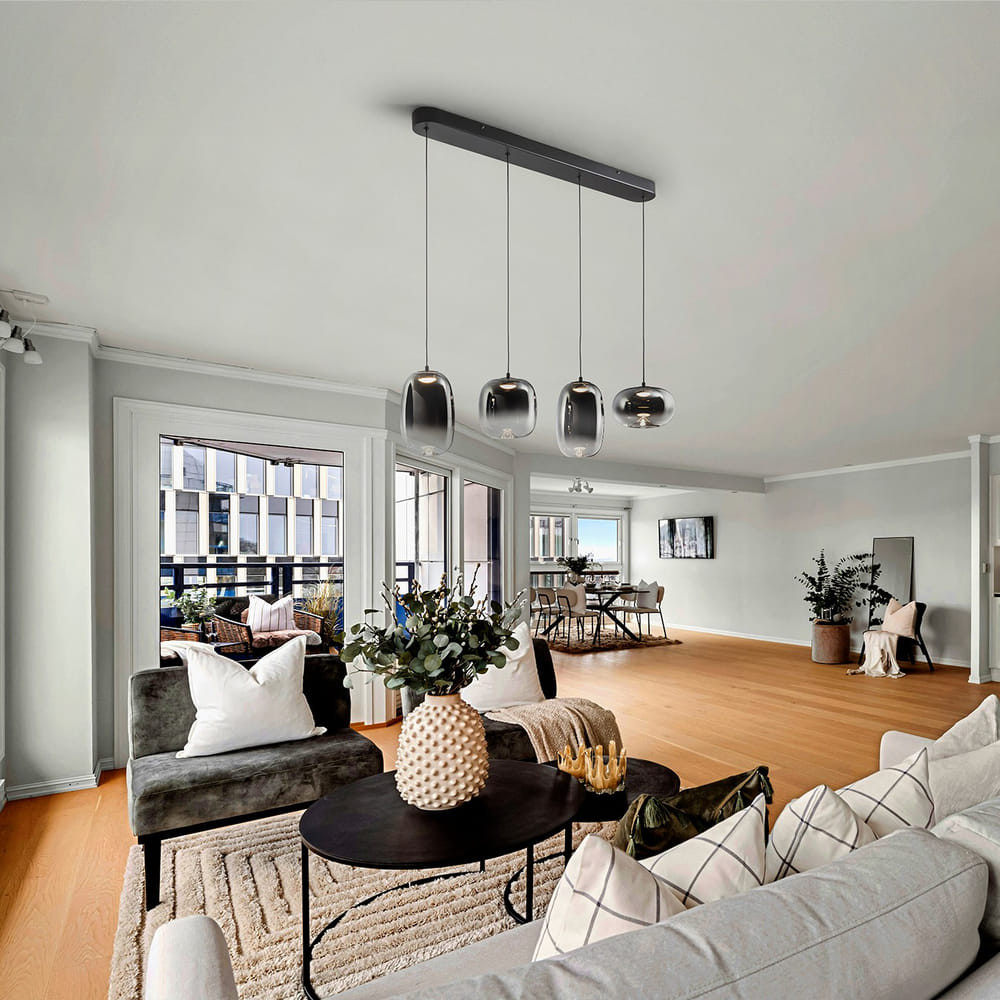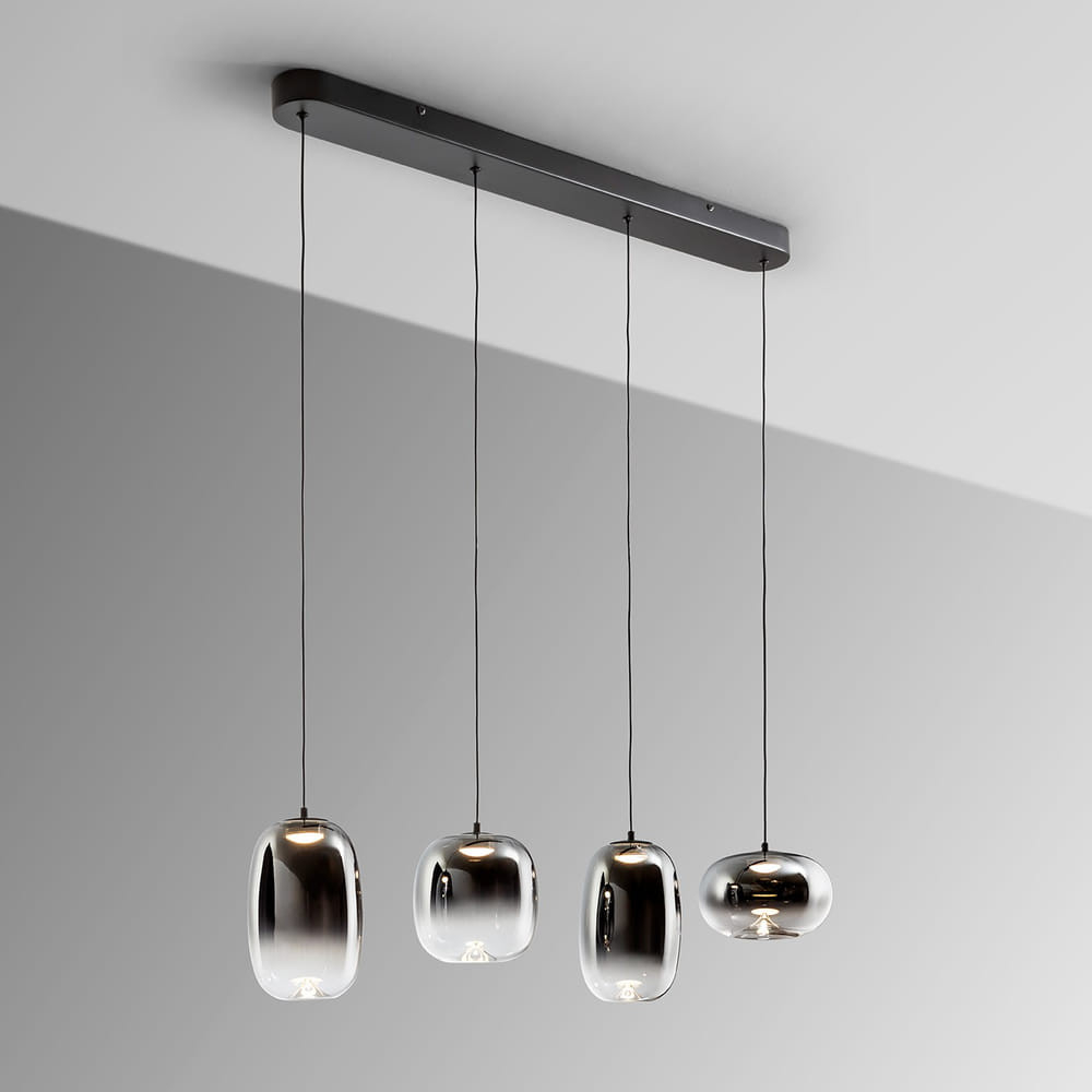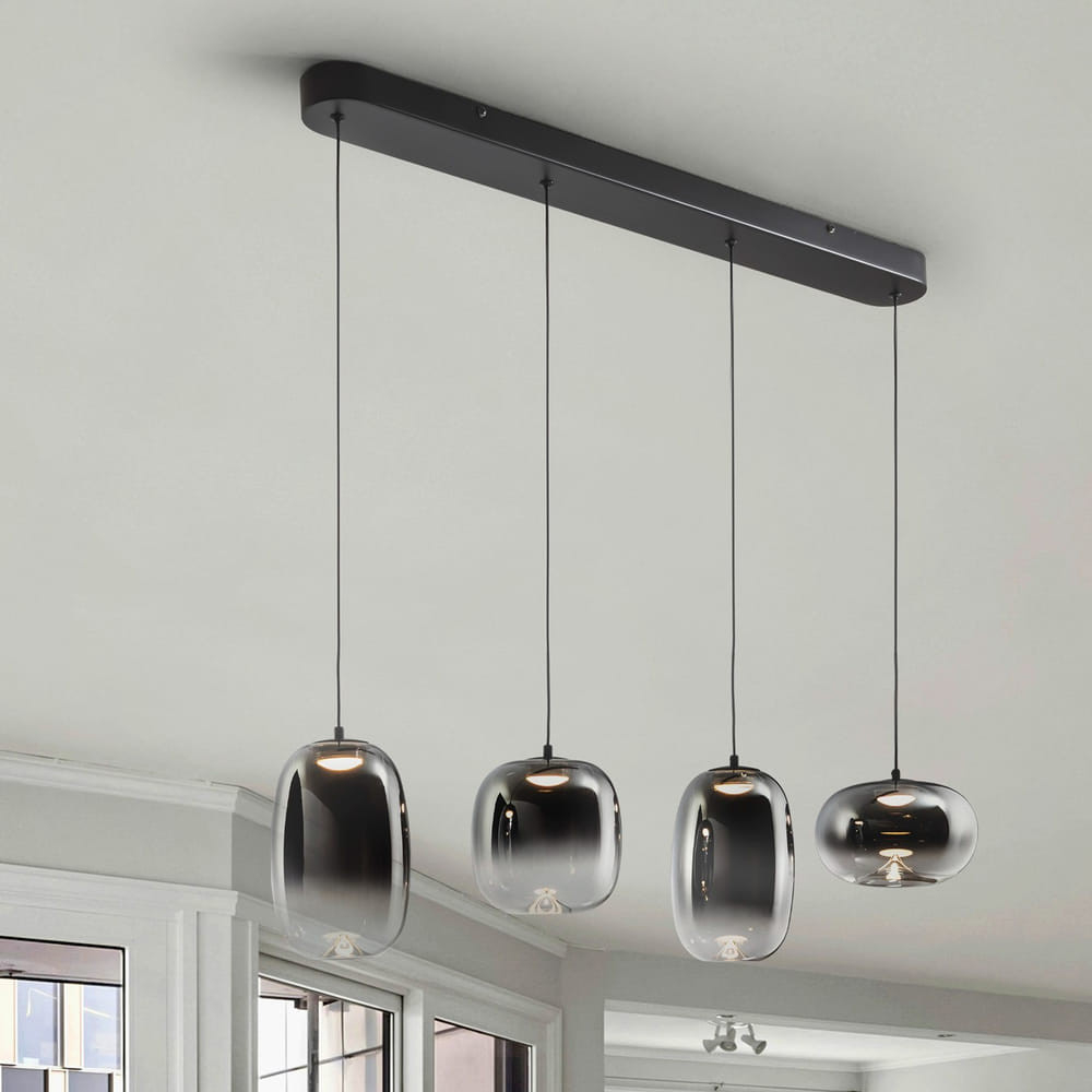 Лед полилей 314329 ONICE - LAMP 4L BLACK-SMOKE ще осигури комфорт и естетика във всяко помещение, в което се постави. Цялостната визия и дизайн на led лампата и вложените в изработката й материали, като метал с черно матово покритие, духано стъкло в опушено сиво преливащо до прозрачно, ще допринесат за един неповторим стил. Благодарение на дългогодишния опит в производството на лед осветление, качествените материали и строгия контрол на качеството на изработка на производителя Schuller (Испания), 314329 ONICE - LAMP 4L BLACK-SMOKE е на високо европейско ниво.