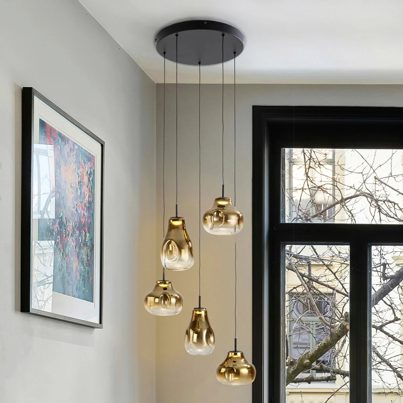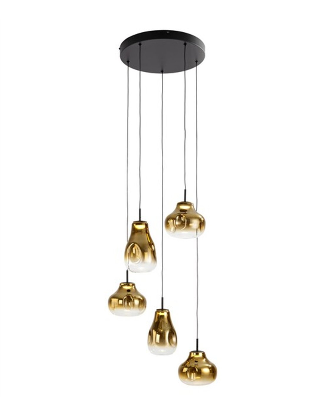 Лед полилей 314862 ALEDIS - LAMP 5L BLACK-GOLDEN ще осигури комфорт и естетика във всяко помещение, в което се постави. Цялостната визия и дизайн на led лампата и вложените в изработката й материали, като метал с черно матово покритие, духано стъкло в златисто преливащо до прозрачно, ще допринесат за един неповторим стил. Благодарение на дългогодишния опит в производството на лед осветление, качествените материали и строгия контрол на качеството на изработка на производителя Schuller (Испания), 314862 ALEDIS - LAMP 5L BLACK-GOLDEN е на високо европейско ниво.