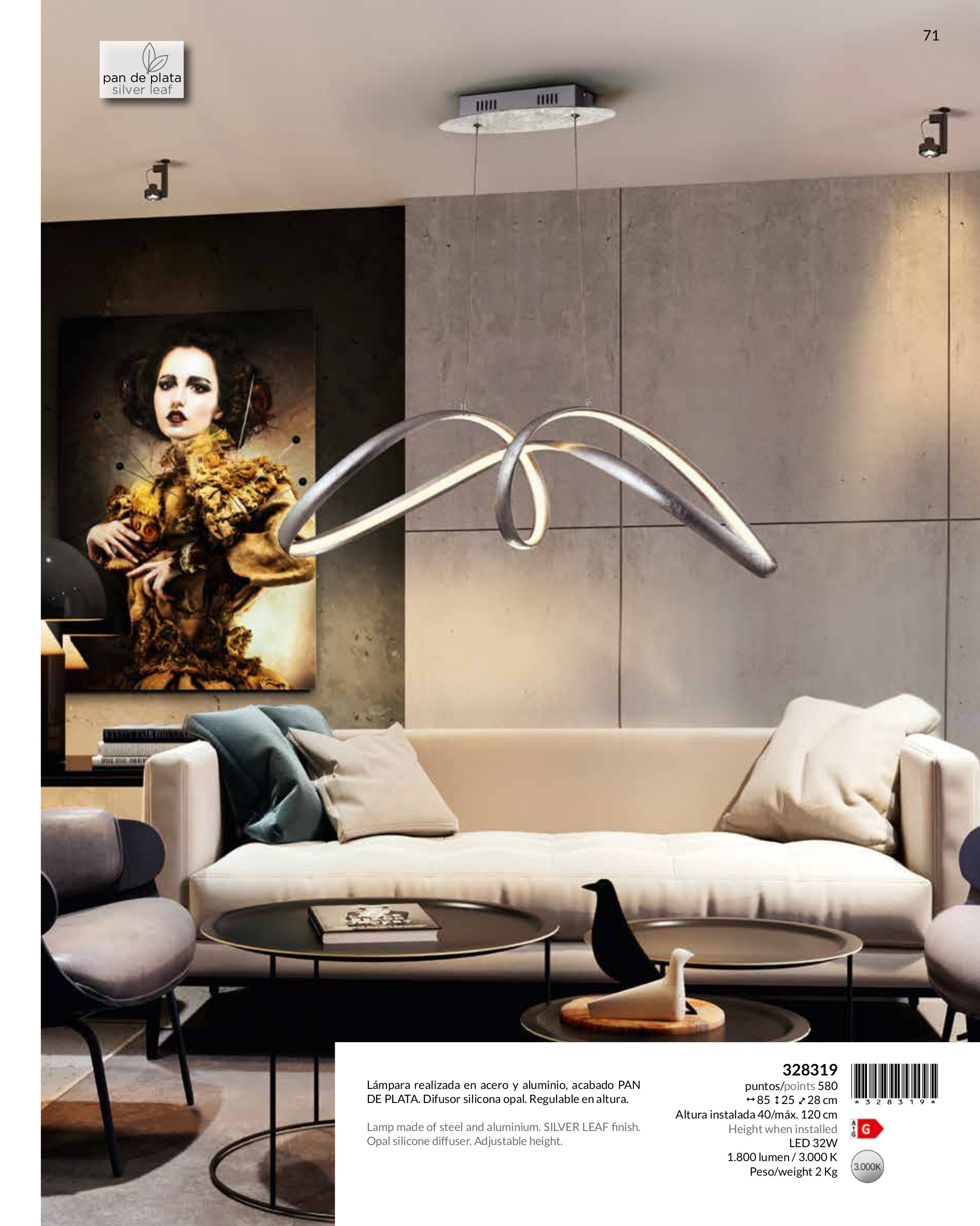 Осветителното тяло 328319 LIA LAMP, SILVER LEAF ще осигури комфорт и естетика във всяко помещение, в което се постави. Цялостната визия и дизайн на лампата и вложените в изработката й материали, като стомана и алуминий с покритие SILVER LEAF, дифузер от опалово бял силикон, ще допринесат за един неповторим стил. Благодарение на дългогодишния опит, качествените материали и строгия контрол на качеството на изработка на производителя Schuller (Испания), 328319 LIA LAMP, SILVER LEAF е на високо европейско ниво.
