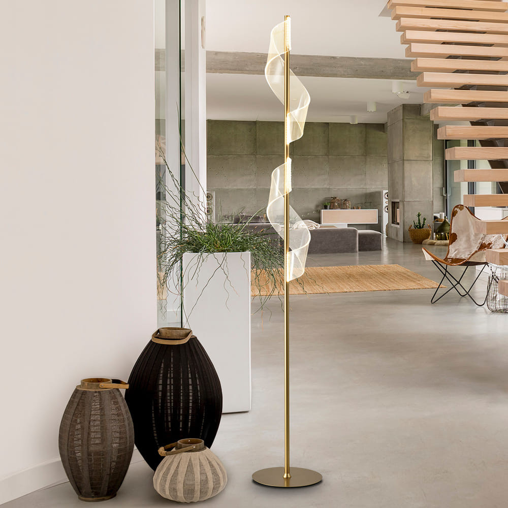 Осветителното тяло 351126 VELAS- FLOOR LAMP, LED, GOLD представлява лед лампион / правостояща лампа в съвременен, дизайнерски стил. 351126 VELAS- FLOOR LAMP, LED, GOLD е от категорията и е подходящо за осветяване на различни помещения и пространства като: всекидневна / хол, спалня, трапезария, офис.