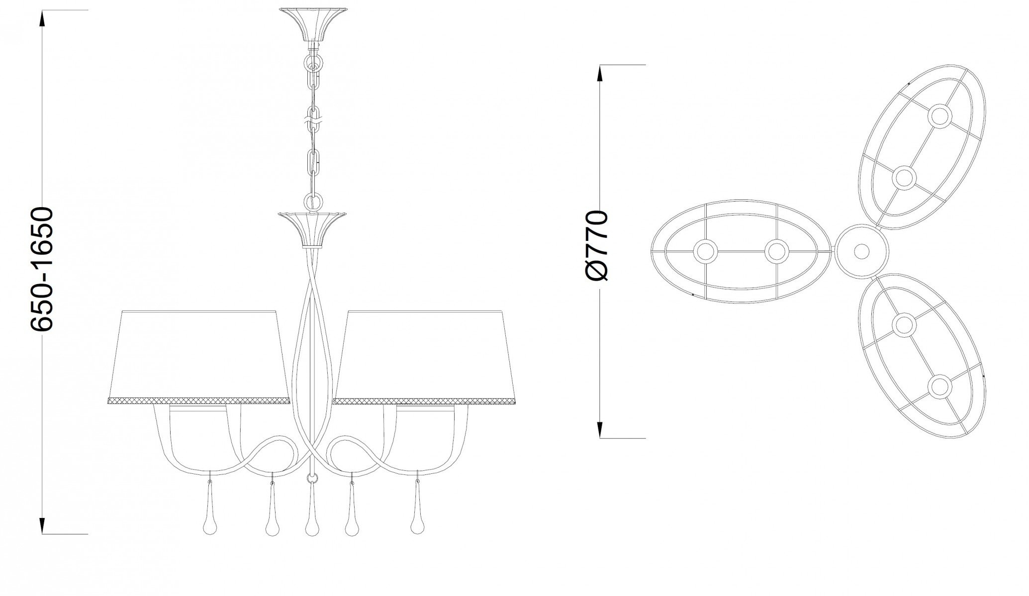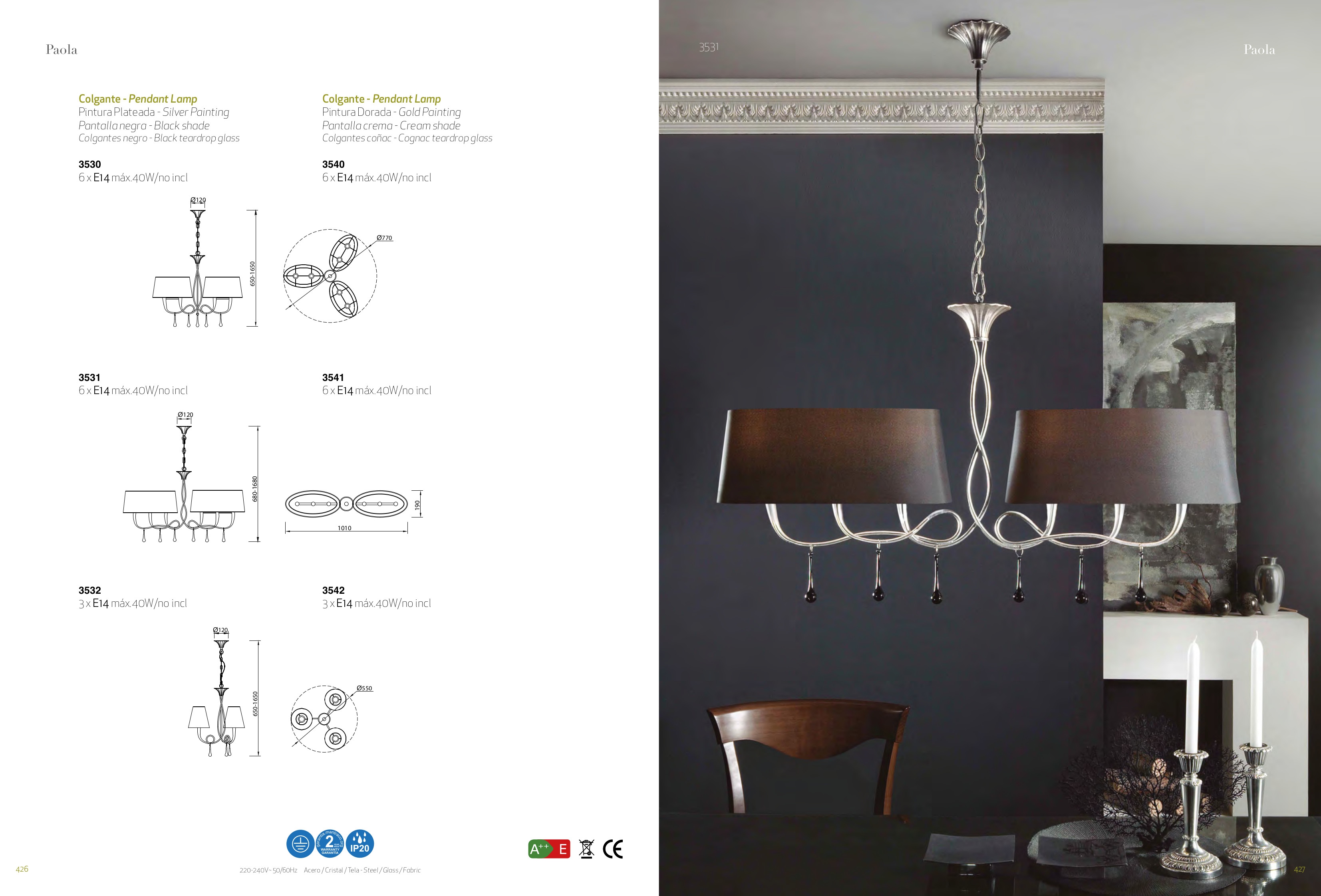 Осветителното тяло 3540 Gold Painting 6 x E14 (No Incl.) PAOLA DORADA представлява полилей в класически стил. 3540 Gold Painting 6 x E14 (No Incl.) PAOLA DORADA е от категорията осветителни тела и е подходящо за осветяване на различни помещения и пространства като: всекидневна / хол, спалня, кухня, трапезария, офис.