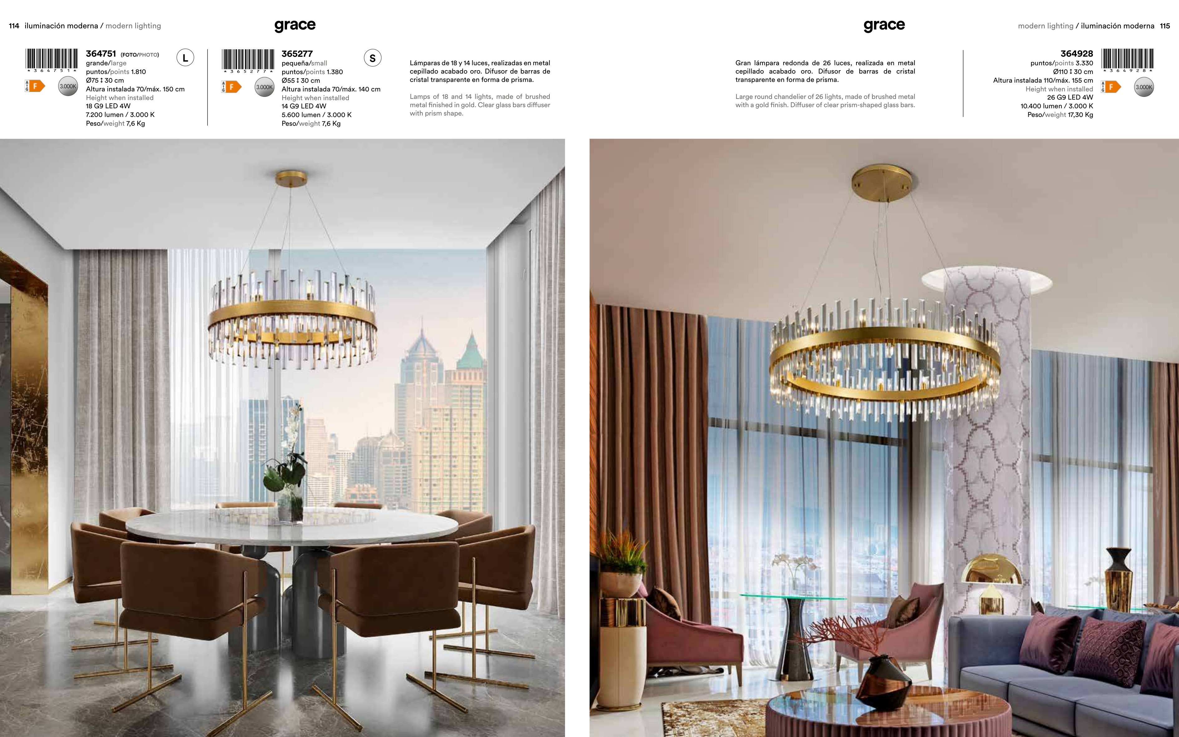 Магазини ОРИОН представят осветителното тяло 364751 GRACE - LAMP 18L GOLD D75, което представлява полилей в съвременен стил. Лампата е част от категорията полилеи и е подходяща за различни помещения и пространства, като например всекидневна / хол, спалня, кухня, трапезария, офис.