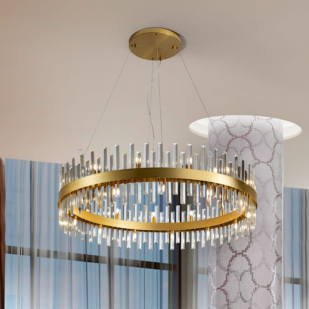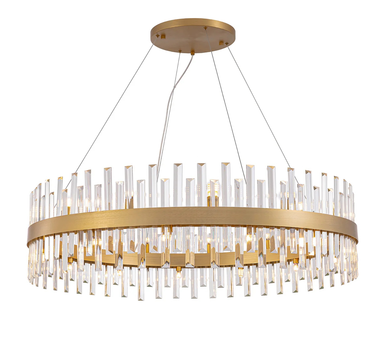 За стила и естетиката на интериора допринасят, както цялостната визия и дизайн на осветителното тяло, така и вложените от производителя в изработката висококачествени материали, като матиран метал със златно покритие, дифузьор от прозрачни стъклени призми.