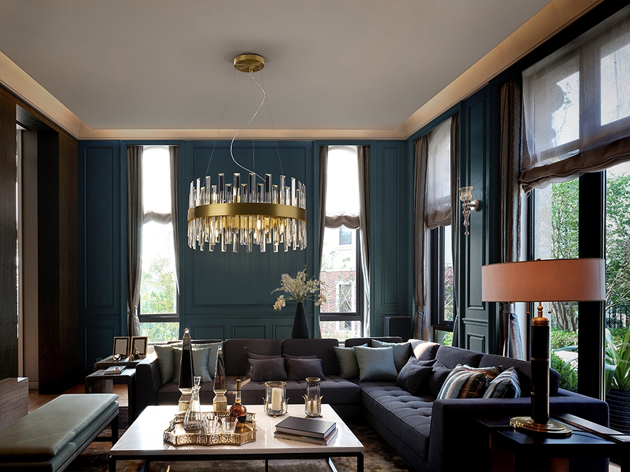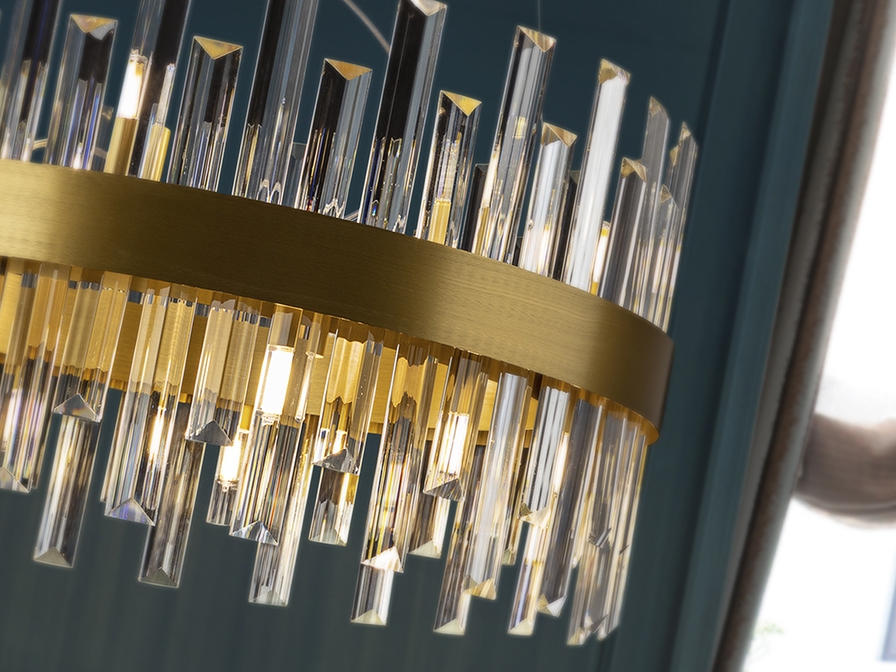 матиран метал със златно покритие, дифузьор от прозрачни стъклени призми