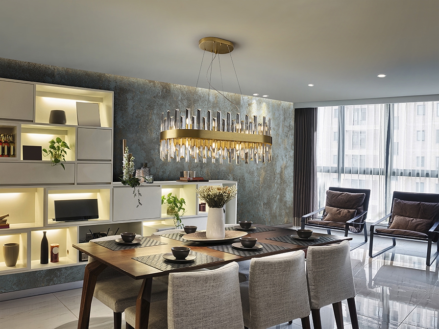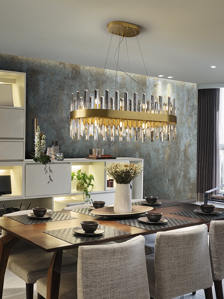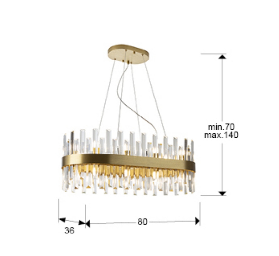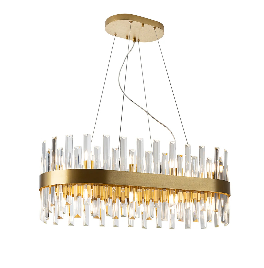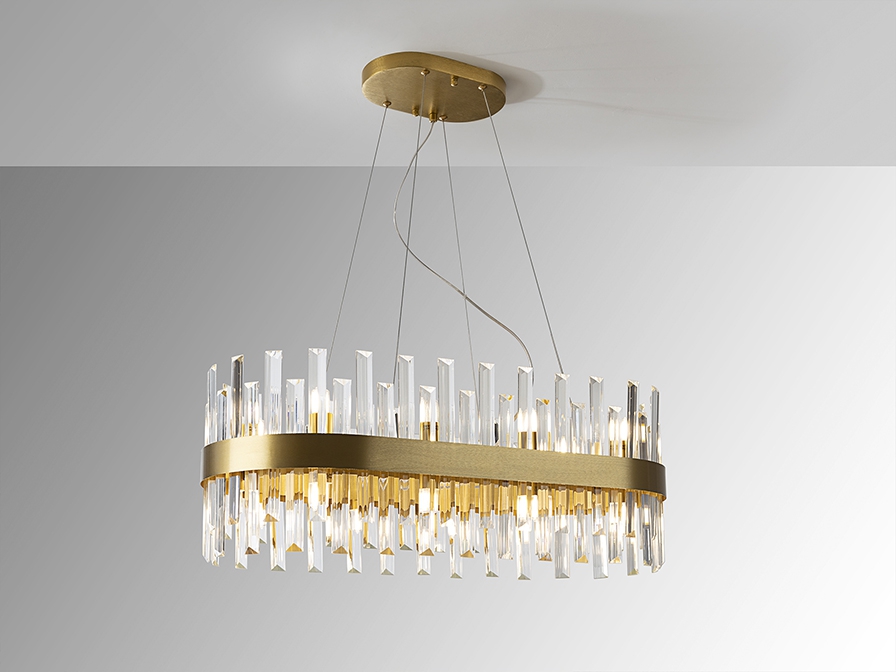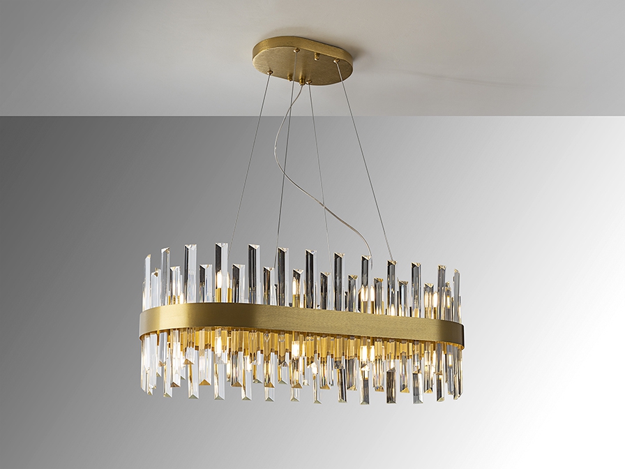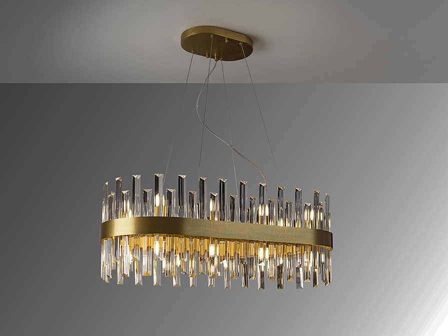 Осветителното тяло 365369 GRACE OVAL LAMP, 20L., GOLDEN представлява лед полилей в съвременен стил. 365369 GRACE OVAL LAMP, 20L., GOLDEN е от категорията и е подходящо за осветяване на различни помещения и пространства като: всекидневна / хол, спалня, кухня, трапезария, офис.
