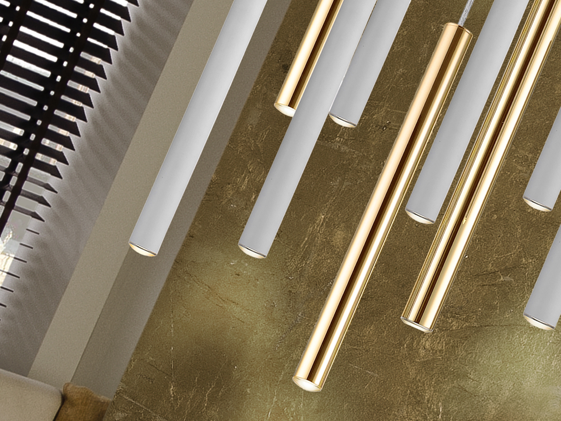 метал в цвят лъскаво злато, метал в матово бял цвят, дифузьор от опалово бял полимер